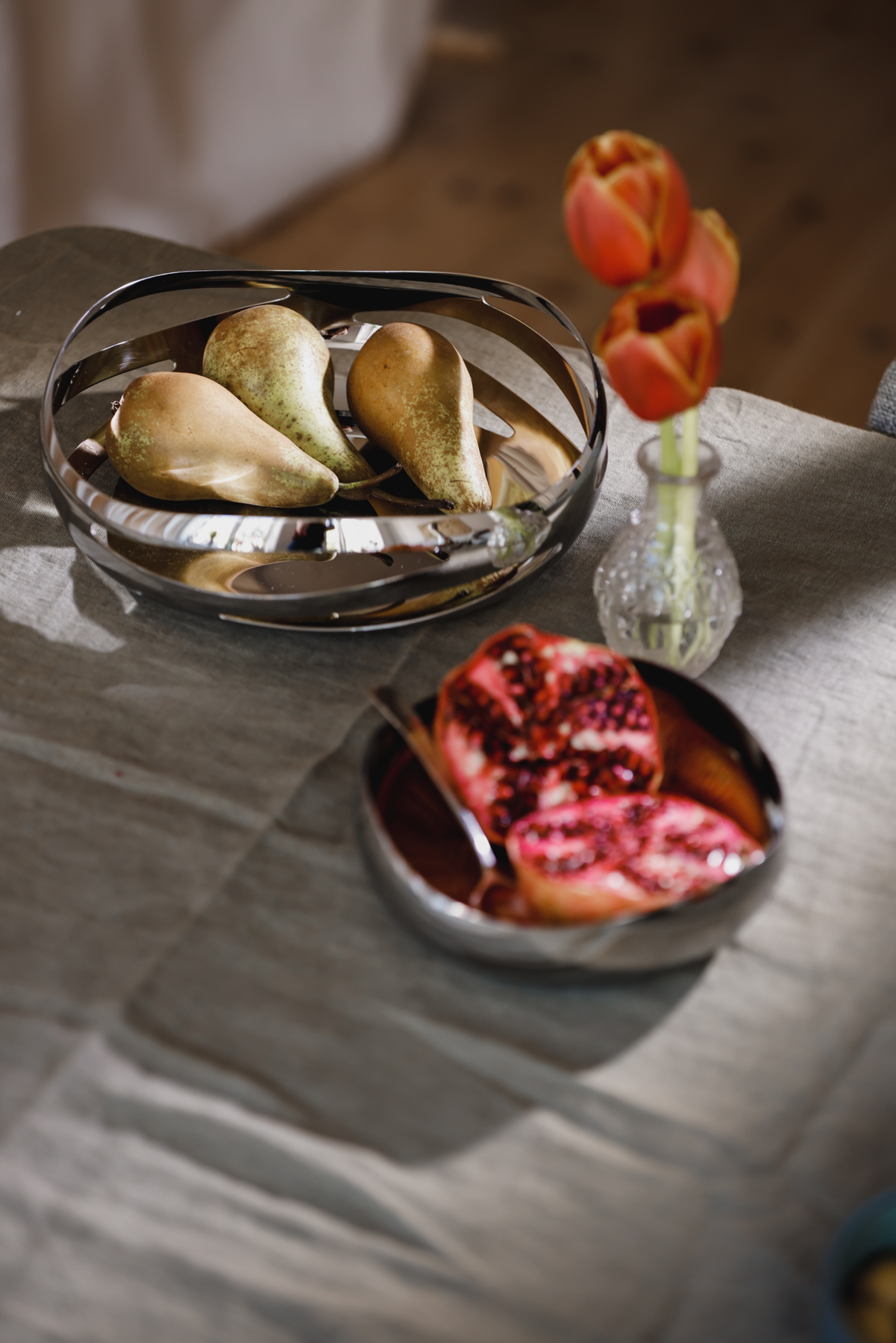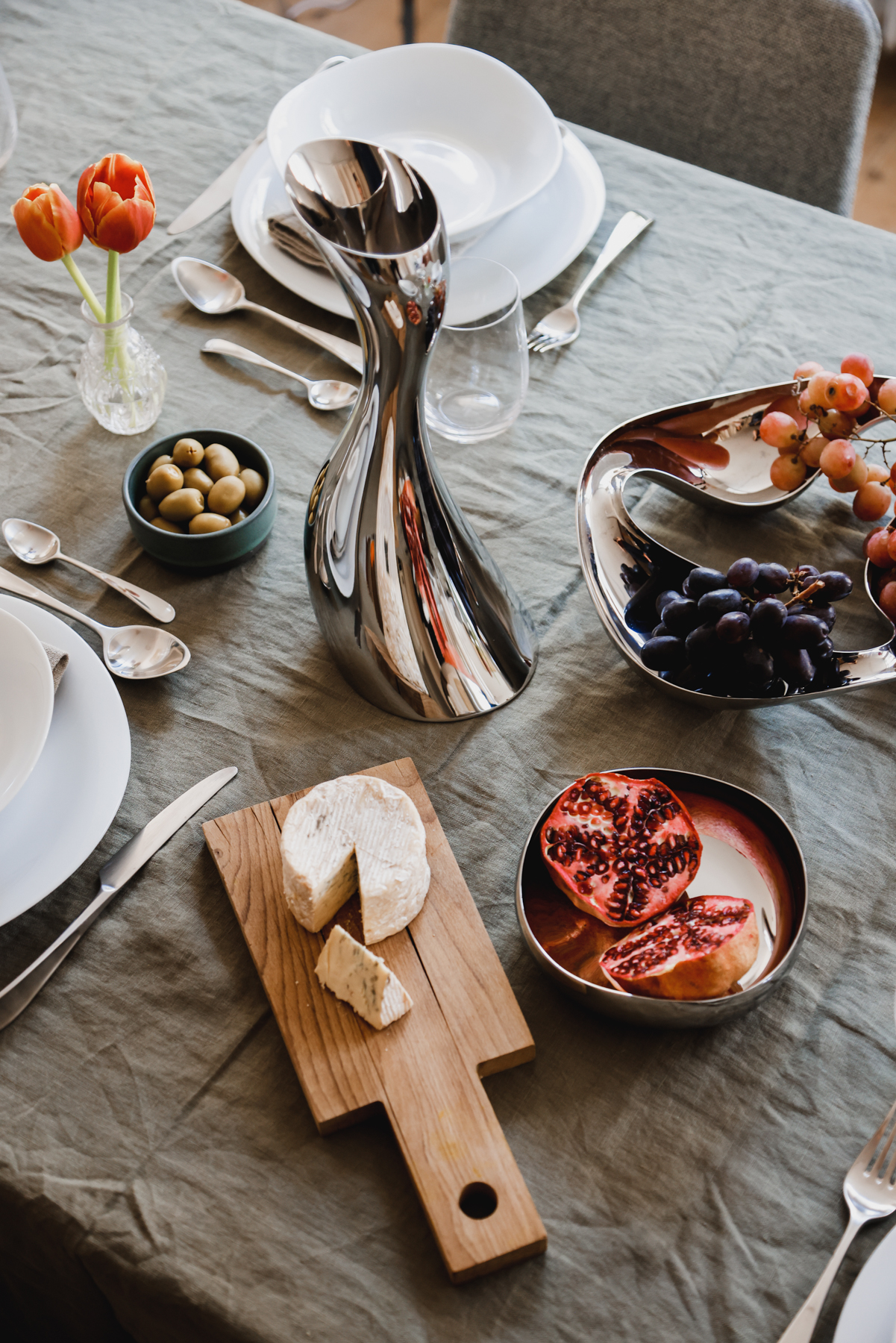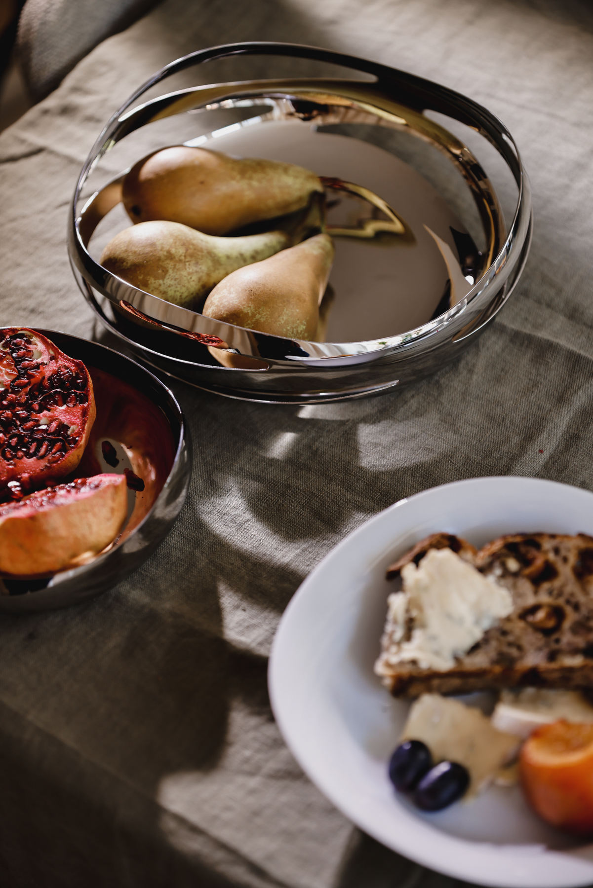 The stainless steel bowls, in particular, are must-haves from the collection. They’re ideal for decoration, bringing a sculptural shape to the centre of the table.