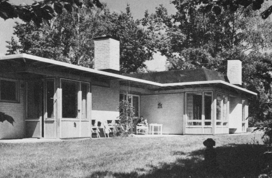 In 1950, the Geisendorfs opened their own firm, L. & C.E. Geisendorf Arkitektkontor (notice who had top billing!), and completed their first project in 1951, a suburban home. Villa Ranängen, named for a neighboring waterfront park, has a one-story, open floor plan accommodating easy access for the one of the family members who was mobility-impaired, allowing easy movement between rooms and to the rear garden. Large windows provide views to the bucolic surroundings.