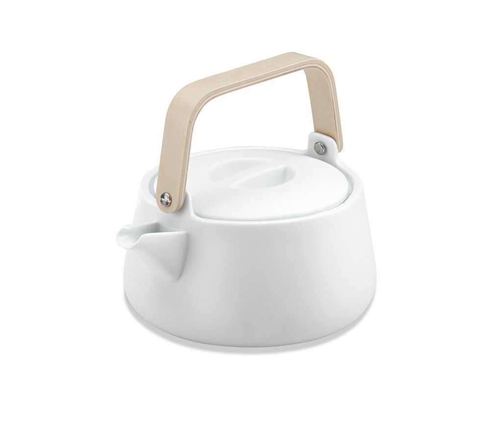 This minimalist white porcelain teapot with wooden handle is wonderful for a tea-lover.