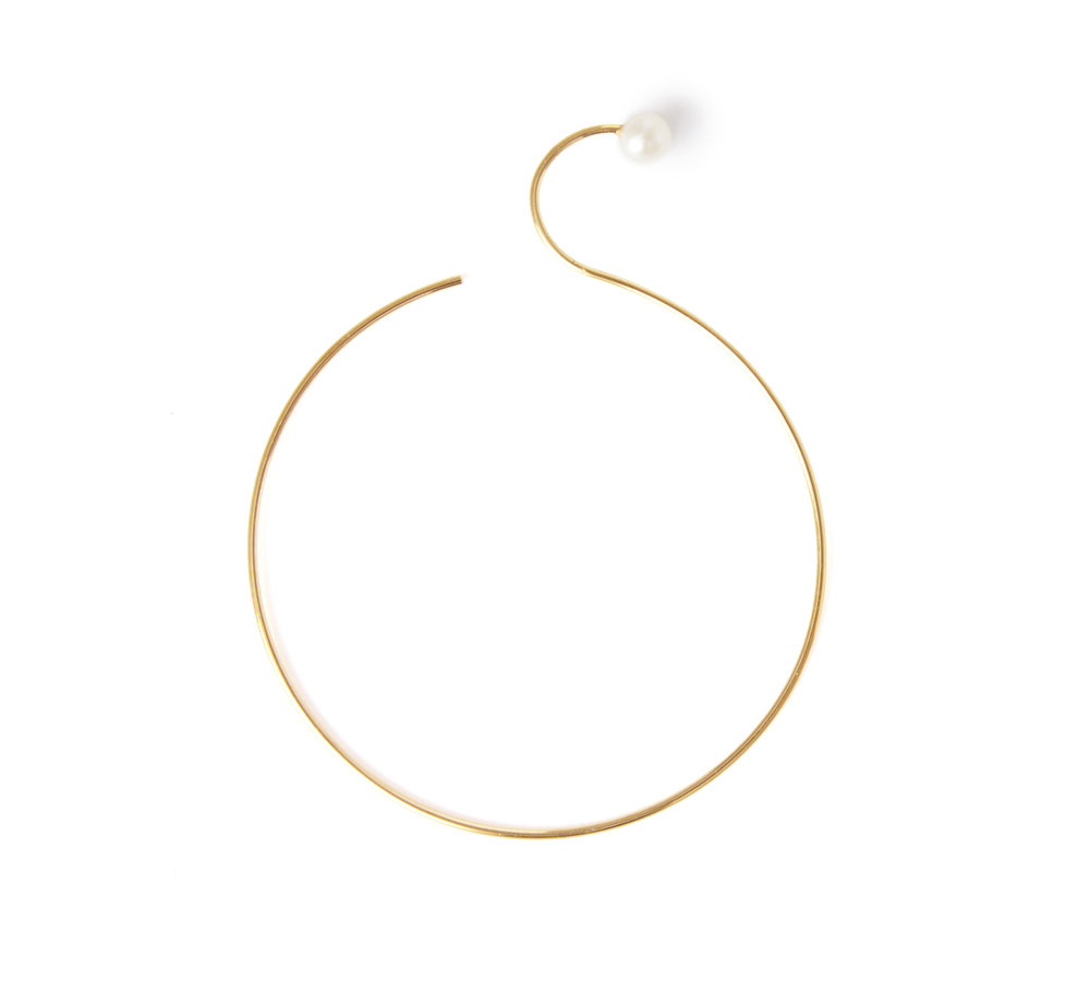 A minimalist and elegant hoop earring with a small pearl hook detail that curls around the top of the lobe. Such an elegant and cool piece! This comes in sterling silver or gold-plated sterling silver.
