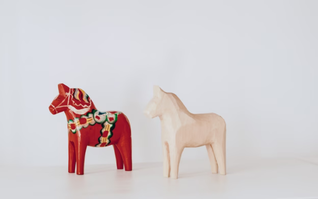 In the 19th century, it became customary to paint the Dala Horses in rich colors and floral patterns. This is known as “mug painting,” a practice quite close to the Swedish folk art style known as Kurbits. Workers often used Dala horses as forms of payment for goods and lodging.