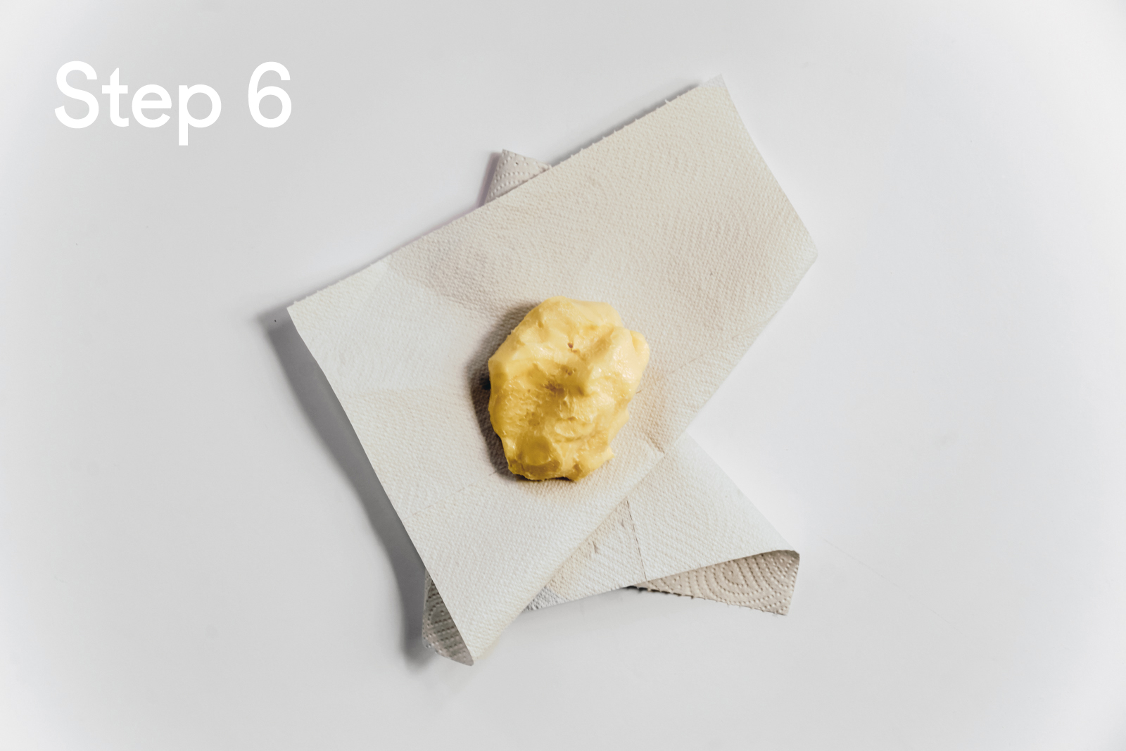 Pour out the water when it becomes cloudy and refill with more water. Continue kneading and squeezing the butter, and refilling the water up to 6 times or until the water is no longer cloudy.