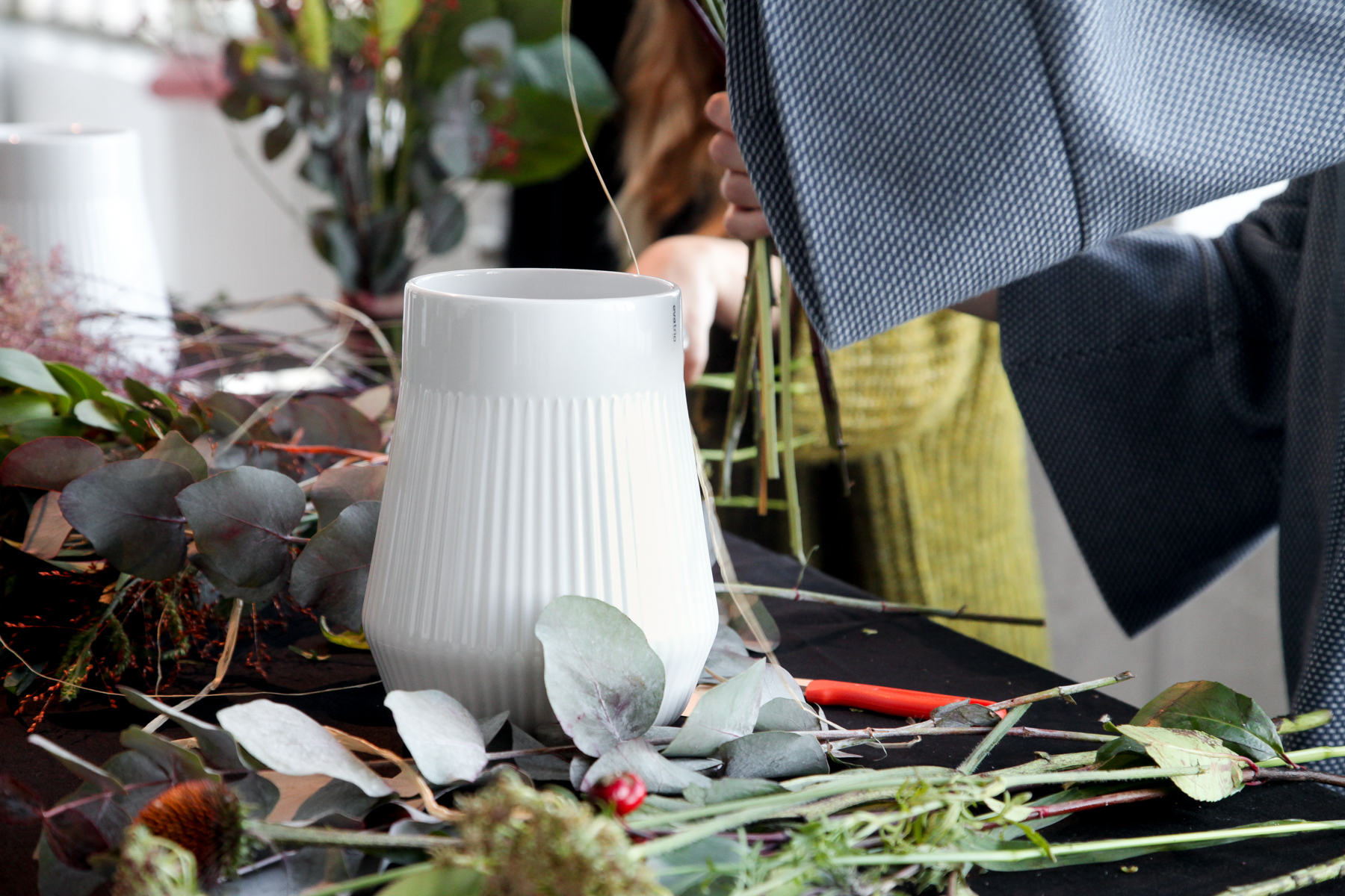 So when the chance to take a flower arranging class was offered by Eva Solo, I jumped at the opportunity. In celebration of their new large vase, Legio Nova, the workshop would teach us to put together our arrangements, as well as how to use the shape of the vase to highlight the stems.