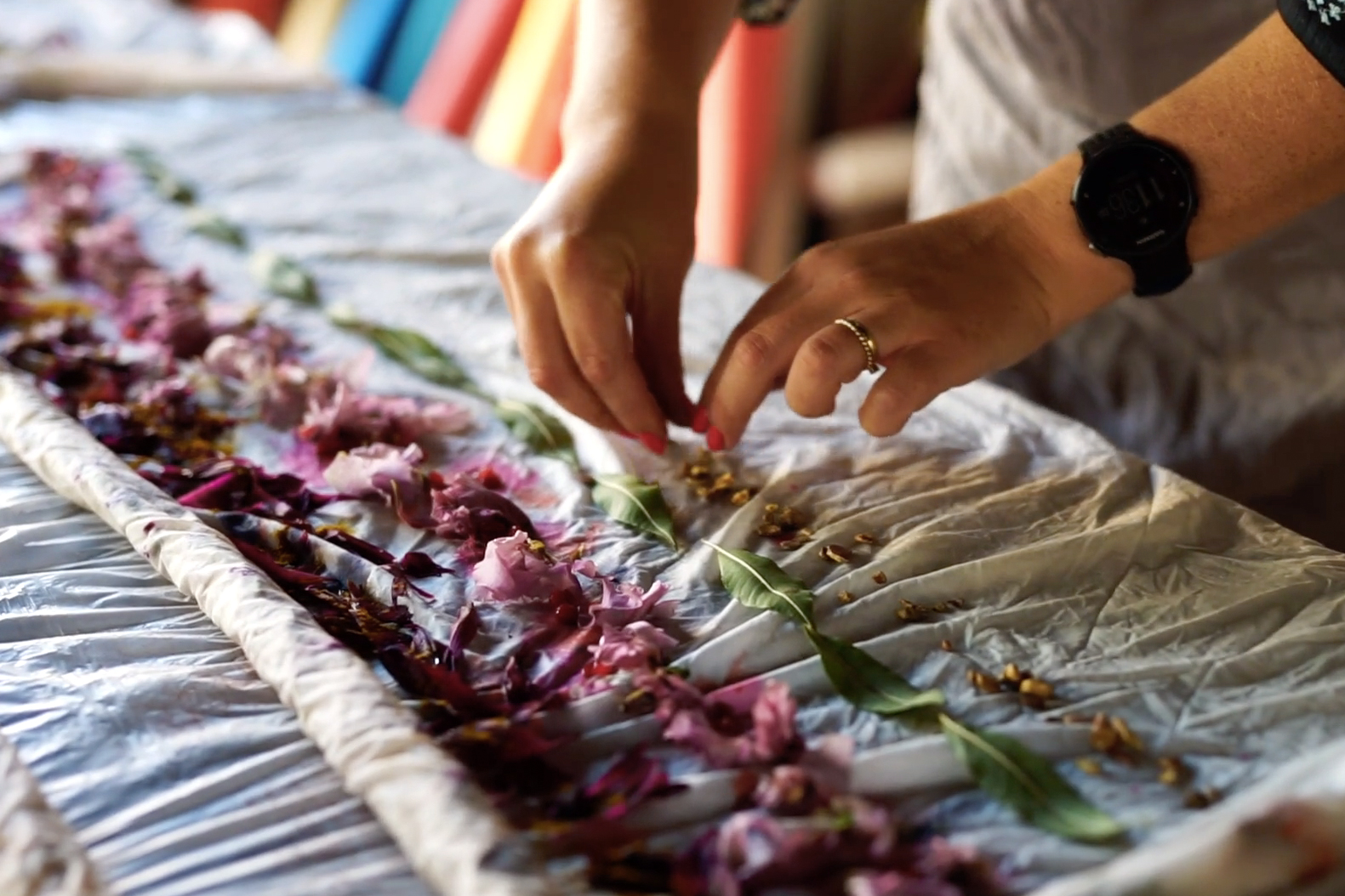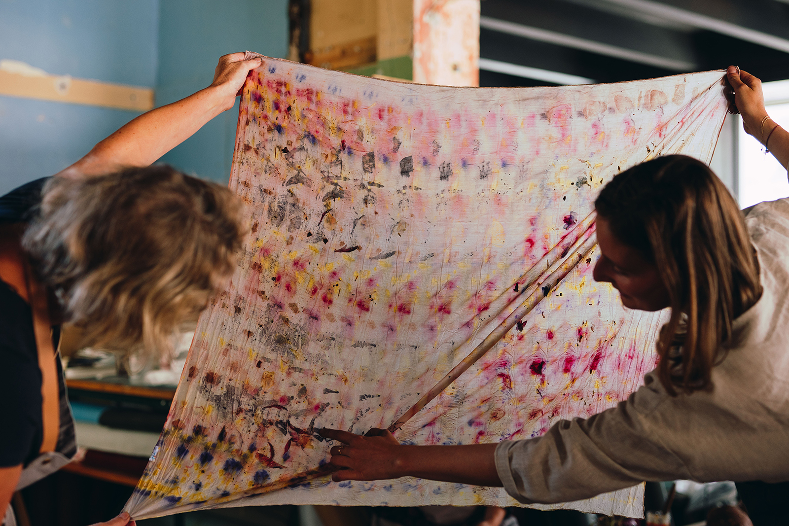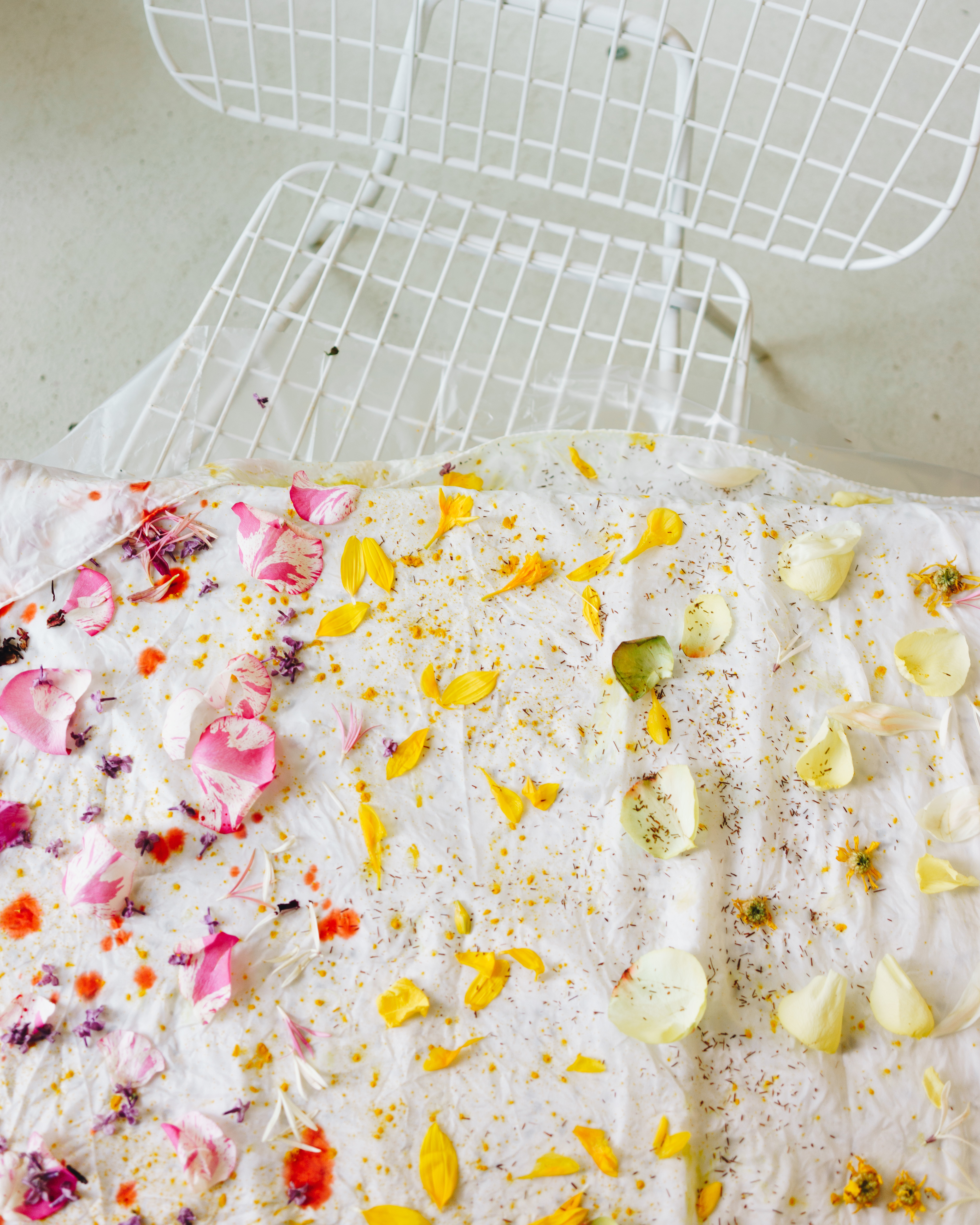My first experience with Marble Matter was in summer 2018, at their “Plant Print” workshop at Plant KBH in Nørdhavn, Copenhagen. Design brand Normann Copenhagen had just held a large event, and they had a huge array of leftover flowers. “We asked if we could take the leftovers off their hands and use them, Julie Bak-Christensen explains, “they said yes! It made the disposal easy for them, and it meant we were reusing something that otherwise would have gone to waste.” The workshop was both fun and enlightening; a true blend of teaching and allowing the participants to express themselves creatively. I walked away exhilarated and impressed with the quality of the instruction (and with a new silk scarf dyed with flowers!).