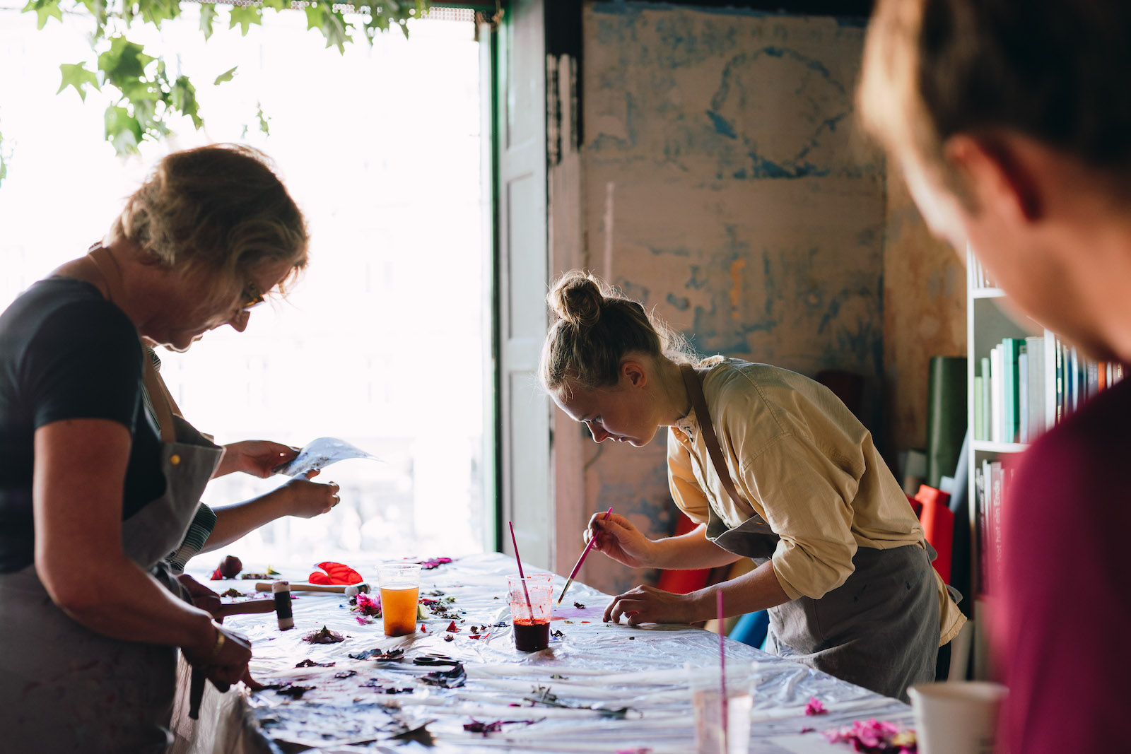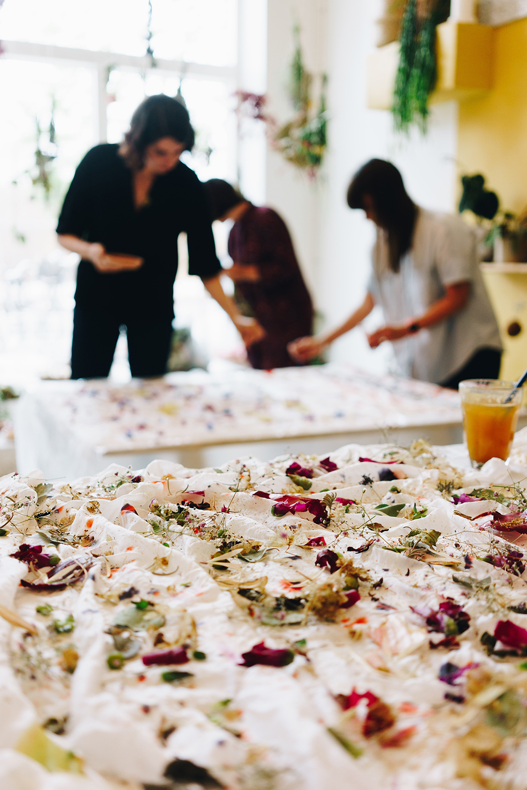 More recently, Marble Matter has begun to offer “plant print” workshops in which they teach people how to dye fabric with plants. “We saw a lot of similarities between marbling and plant dyes,” explains Anne-Sophie, “especially in the preparation of the materials. So it made it easy for us to bring the new workshops into the mix.”