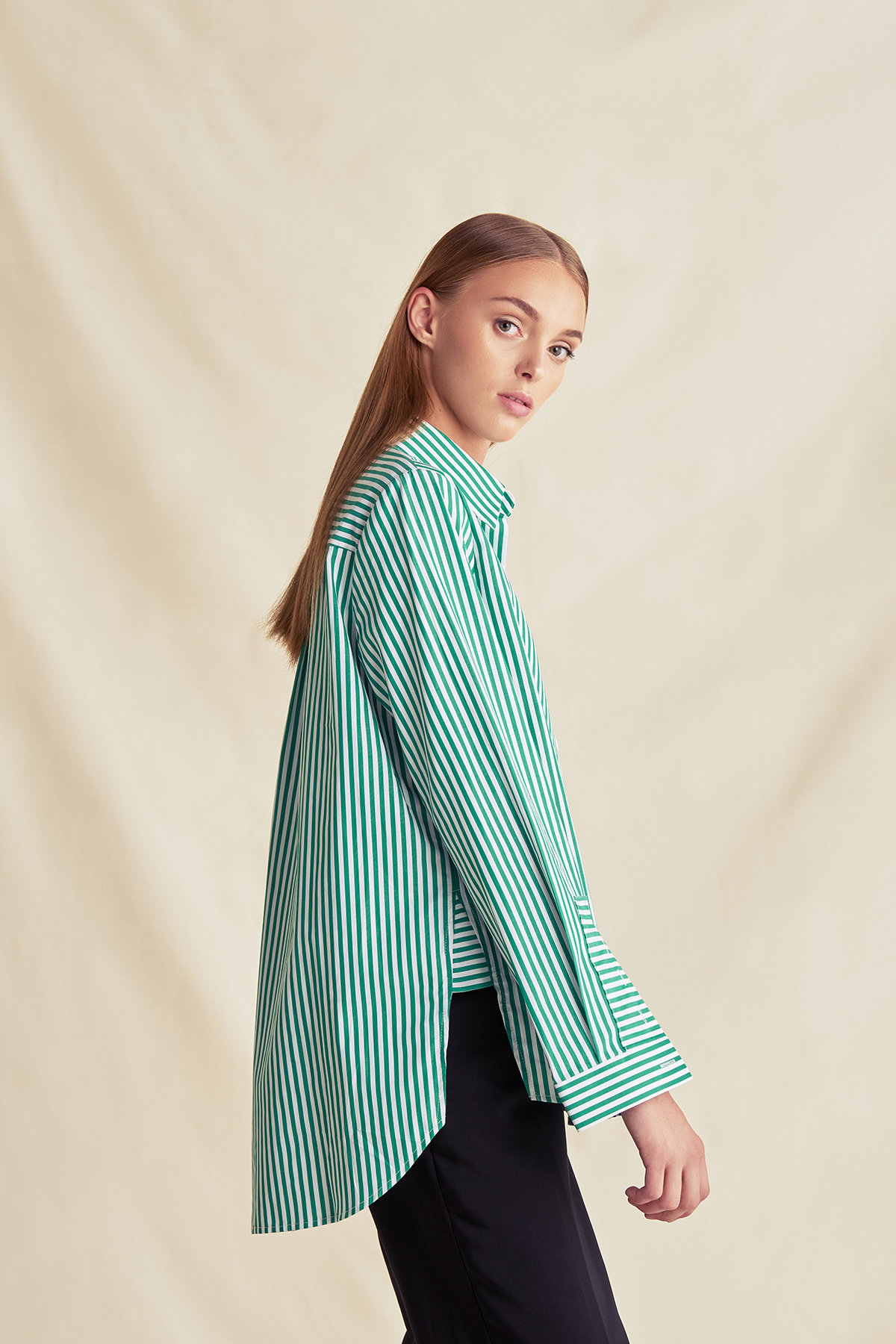 SLEEK atelier’s shirts are made from 100% cotton and are produced in a family-owned factory in Shanghai, where Viktoria lives. This means that she can observe the production process, and the brand has a high level of control over the designs. “Often in fashion, you’re doing a lot of back and forth with prototypes,” Karla says, “but we’re lucky. Viktoria just goes into the factory and goes through the design very specifically. Because she can work so closely with the team there, we often only have one prototype before a piece goes into production. That may seem like a small thing but for us it’s a much more sustainable way of working.”