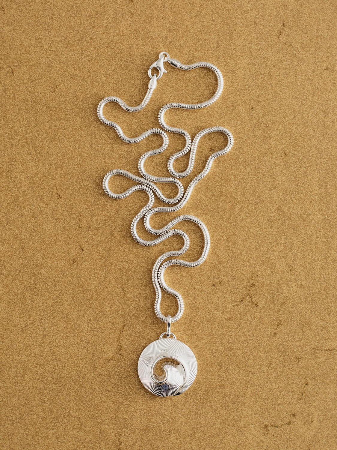 The Milady Pendant keeps surprising me with its versatility. During a trip to Biarritz, my friend found a large, fractured seashell on Milady Beach — hence the name. We were instantly inspired by its imperfect beauty and visualized it as a piece of jewelry.
