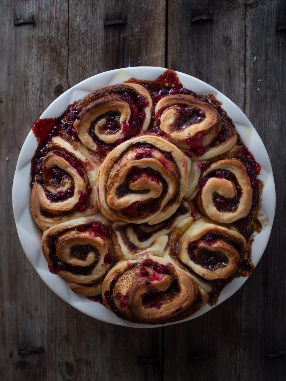 Skillingsboller get their name from an old custom of naming baked goods after their price. They used to cost a skilling apiece though that’s certainly not true anymore. It’s said that skillingsboller originally contained raisins, but after the war, raisins were difficult to obtain and the buns were sold without them. I like to add rye flour to my version. It gives the buns a bit more texture and depth, which I think complements the sweetness perfectly.