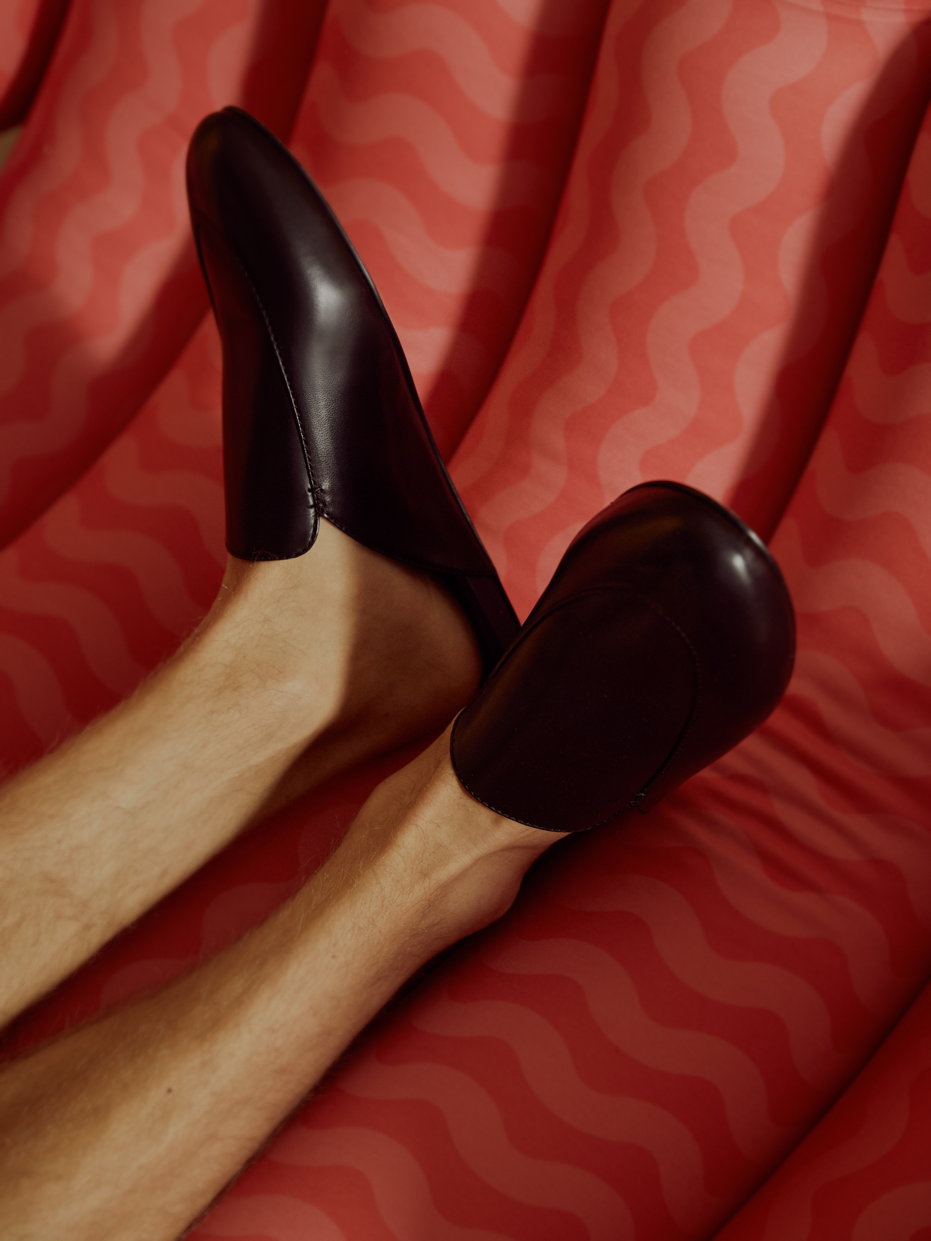“We spent a lot of time developing the sole, especially the inner sole,” Jansson says. “I now have such respect for shoemakers, because beforehand I did not realize what a craft it is to make shoes. We wanted our slippers to be comfortable but still elegant, so we developed a built-up sole that has a metal shank in it, the way that men’s dress shoes do. Once we had that down, it was easier to build the rest of the shoe.”