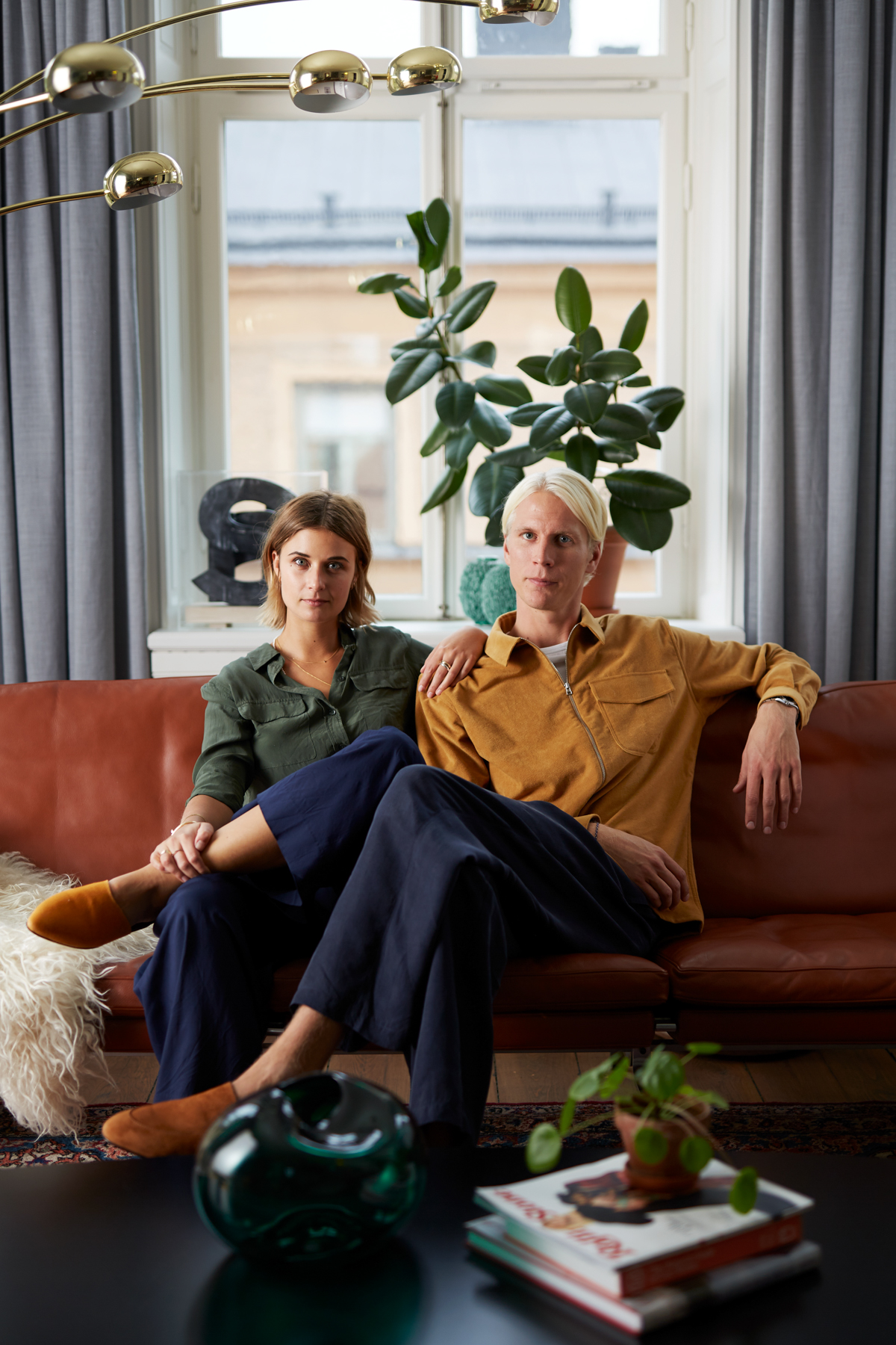 Right: Real life couple and business partners Ludvig Lindberg and Sofia Jansson, founders of indoor slipper company Inabo