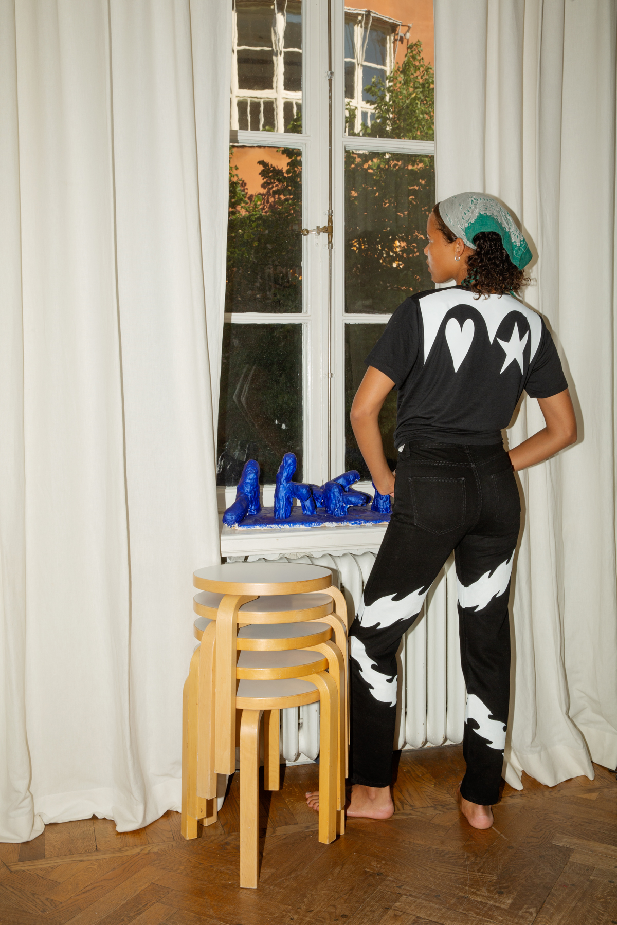 “I started painting on jeans for fun, but at some point, I went into orjanandersson [a denim brand owned by one of the Cheap Monday founders] and started speaking with Andersson himself. I was showing him my jeans and he was telling me about the jeans he would make when he was young. We were swapping ideas and at the end of the conversation he was like ‘do you want to paint jeans for the store?’ Of course, of course I want to paint jeans!”