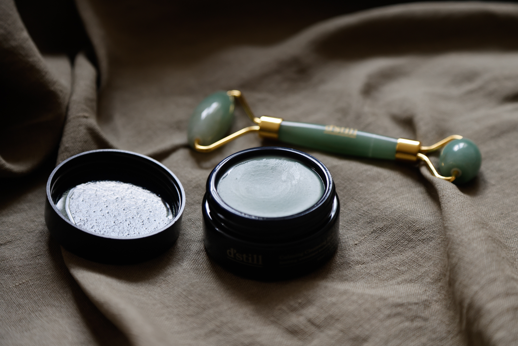 D’still beauty isn’t interested in only the topical elements of skincare, but in the ritual of it as well. They have two facial tools as part of their products: a gua sha tool and a facial roller. Both of these tools are made from Aventurine stone.