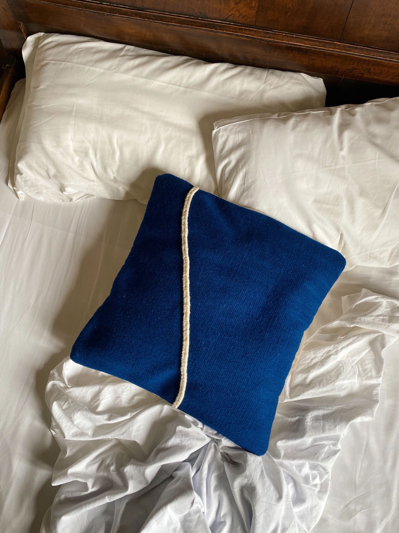 Añil número dos is inspired by the sandy beaches of Mexico’s Caribbean coast. The cushion cover is made from undyed wool.