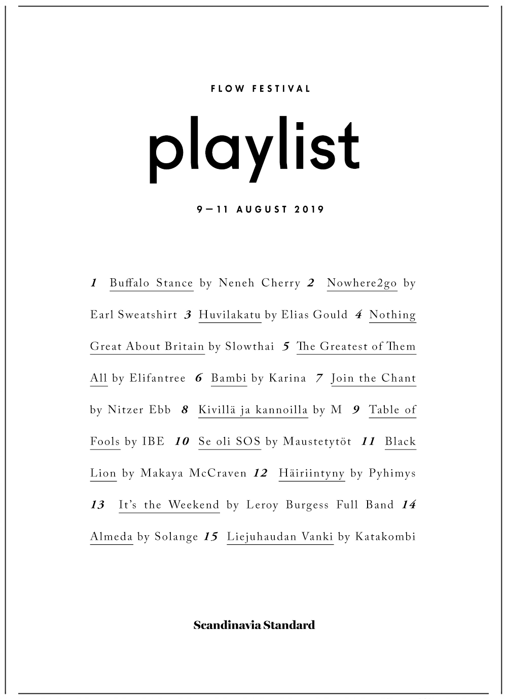 Whether you’re going to Flow Festival or not, get yourself into the right mindset with music from their line-up. At the end of the list you’ll find some really heavy stuff from Finnish metal band Katakombi, just to really get you headbanging.