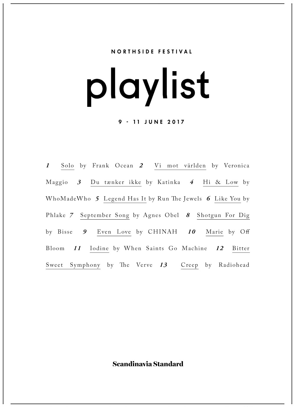 NorthSide Festival takes place in Aarhus, Denmark from 9 – 11 June this year and the line-up is better than ever. With headliners like Frank Ocean (!!!!!) and Radiohead (anyone born before 1995 out there?), this promises to be a festival that covers a range of musical genres and showcases some big names while supporting those still emerging on the scene.