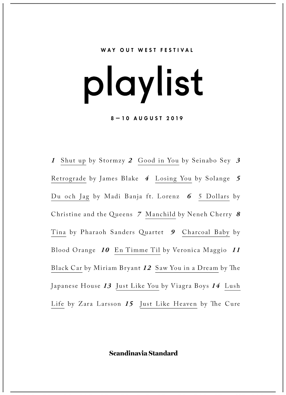 In addition to the festival itself, WOW hosts “Stay Out West,” a post-festival series of concerts that keep the party atmosphere alive well. So whether you make it to Gothenburg for the festival this year, get there a little later, or just want to listen to some great music in your own headphones, our playlist is for you.