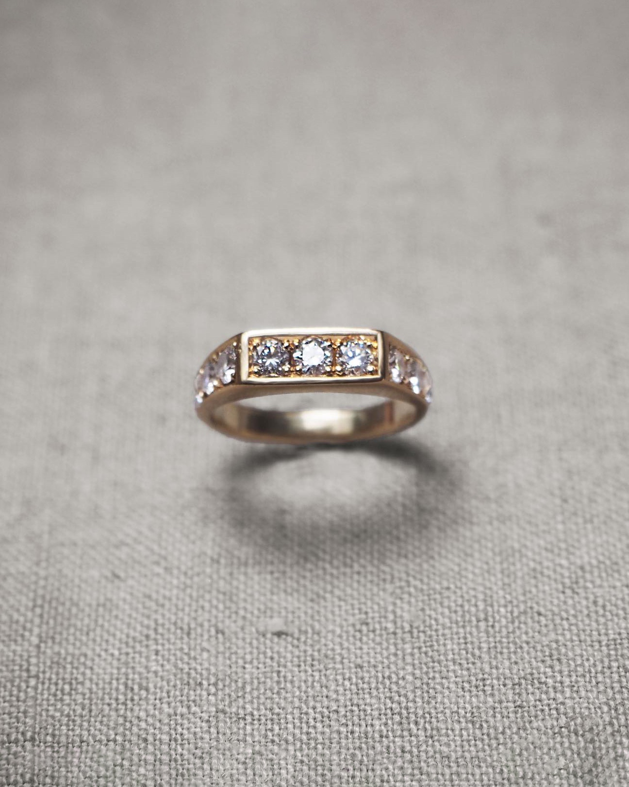 Goldsmith Charlotte Christina Larsen is the designer and maker behind each and every piece, meaning that stock is low (and made-to-order) but craftsmanship is extremely high. She also makes custom wedding rings and other pieces. Charlotte is inspired by the Art Deco period and her aesthetic reflects this; symmetrical pieces that highlight the stones in the piece.