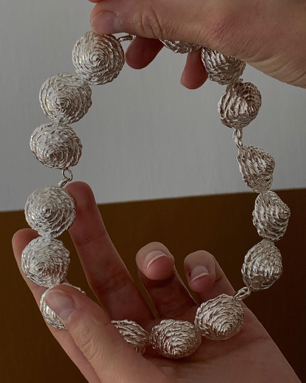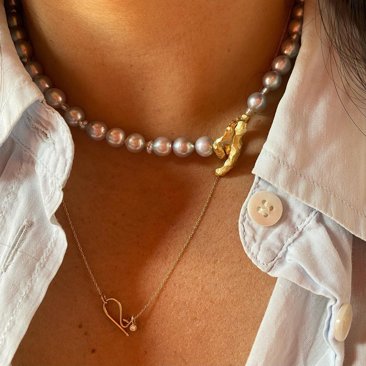 She also has a sculptural collection in sterling silver. s’s pieces are all handmade; they offer the perfect visual balance between opulence and craftsmanship. They are easy to wear, yet elevate any look.