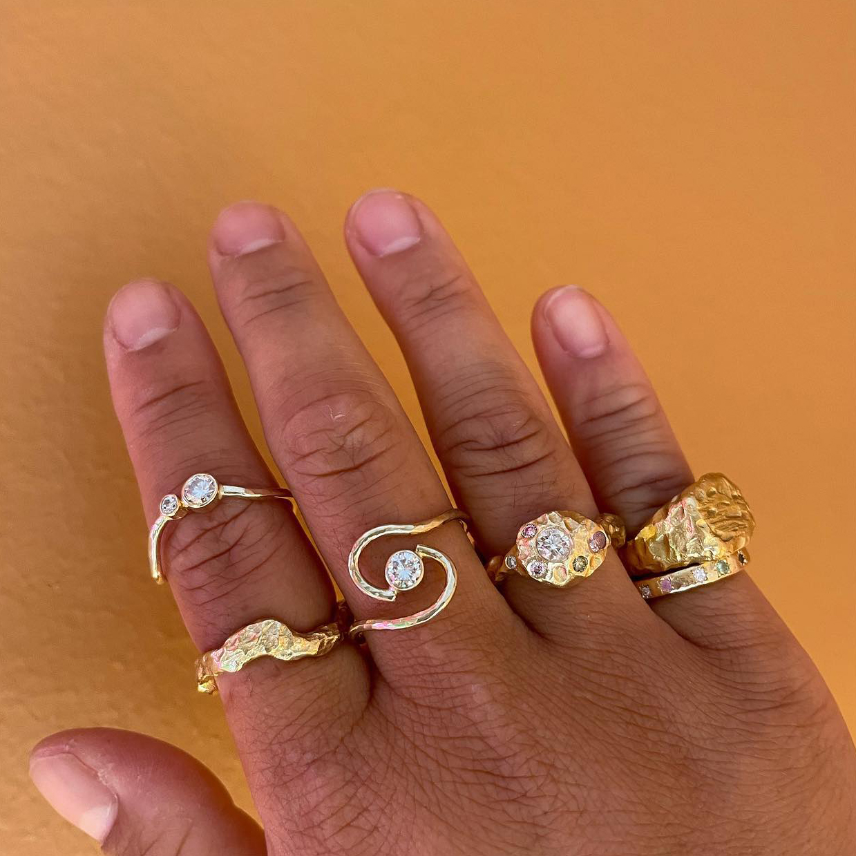 Goldsmith Sara Jin Mi opened her eponymous label in 2020 and has quickly become known as a source of organic, raw, and poetic fine jewelry rendered in 18K gold, diamonds, opals, sapphires, and other precious stones.
