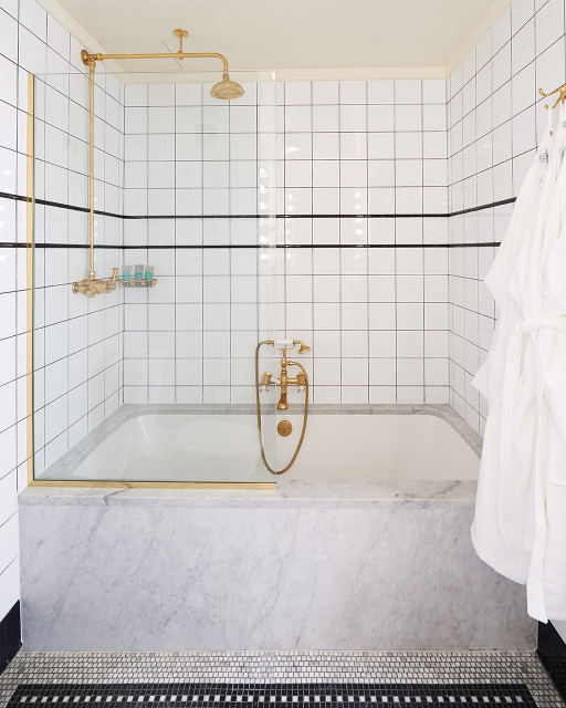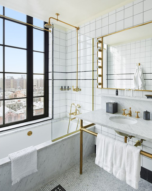 The rooms are spacious and simple, and their bathrooms are…well, decidedly not the size you expect from most New York City real estate. A tub you can really stretch out in! Mmm, heaven.
