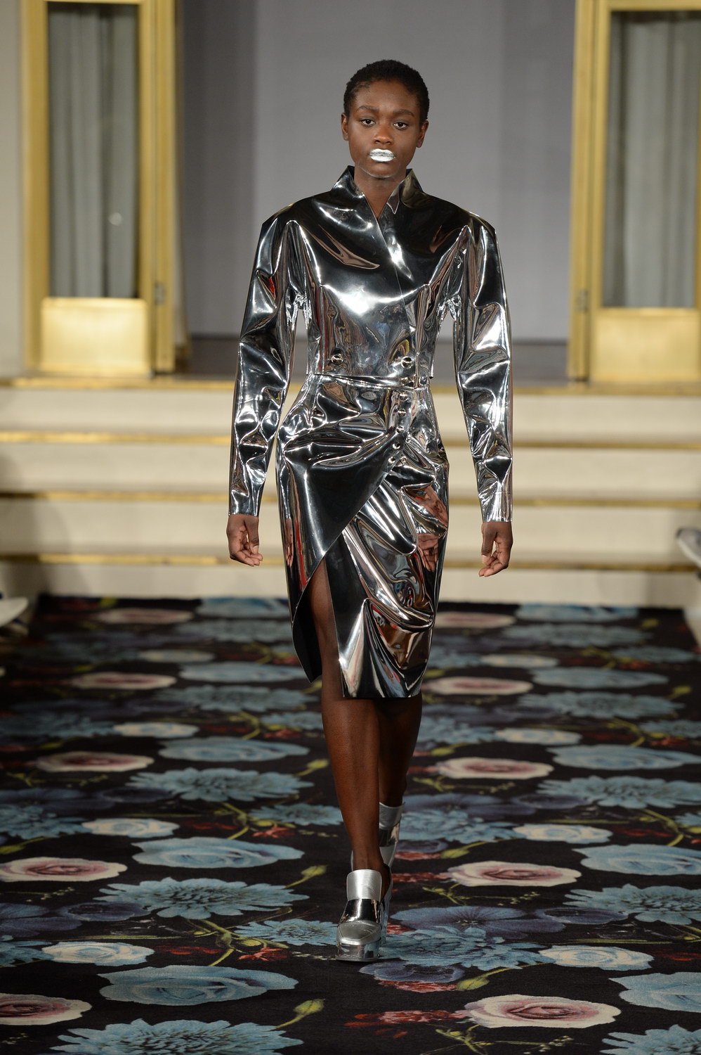 Knowing Morten Ussing’s previous collection of candy-colored tulle confections, anticipation for this season was high. Ussing didn’t disappoint, with hyper-feminine silhouettes and rich colors that bring to mind 1970s Elisabeth Taylor; his deep pink empire waist, pleated dress is a stand-out. The opening siver number was Grace Jones-meets Bianca Jagger fabulousness.