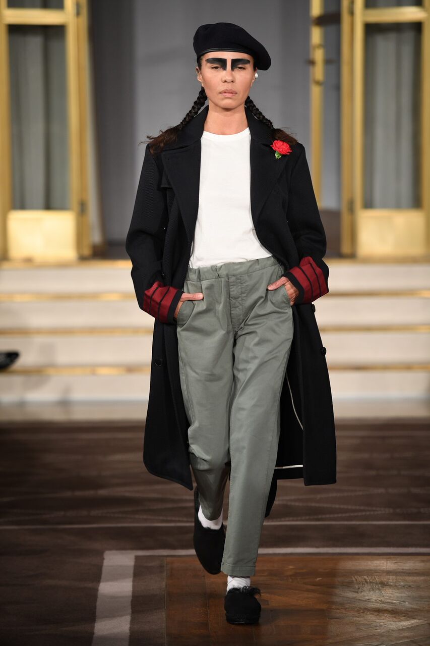 Bring back the boutonnière! Finally, someone has stepped up to the plate. Aside from a truly diverse show casting (YES THANK YOU), Uniforms for the Dedicated impressed us with their minimalism-meets-military vibe and beautiful details, such as oversized stitching, piping and a red carnation in each lapel. These are high-quality clothes that will never go out of style, and the Swedish design house makes it look easy every season.