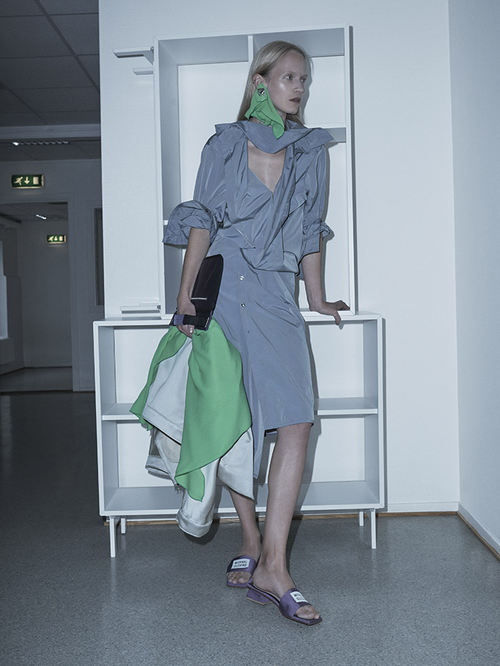 Bright color combinations, unexpected draping and sleek silhouettes characterised Olestad’s collection this season. You can see the influence of his former work at Acne Studios; this is definitely for the club crowd, but fashionable as hell. His greens and blues were expertly paired and oh-so-good.