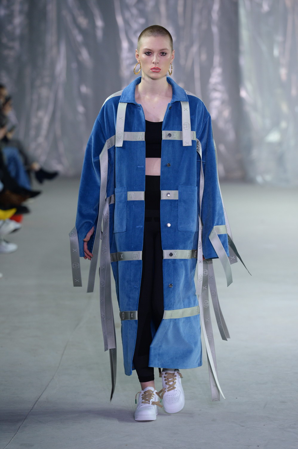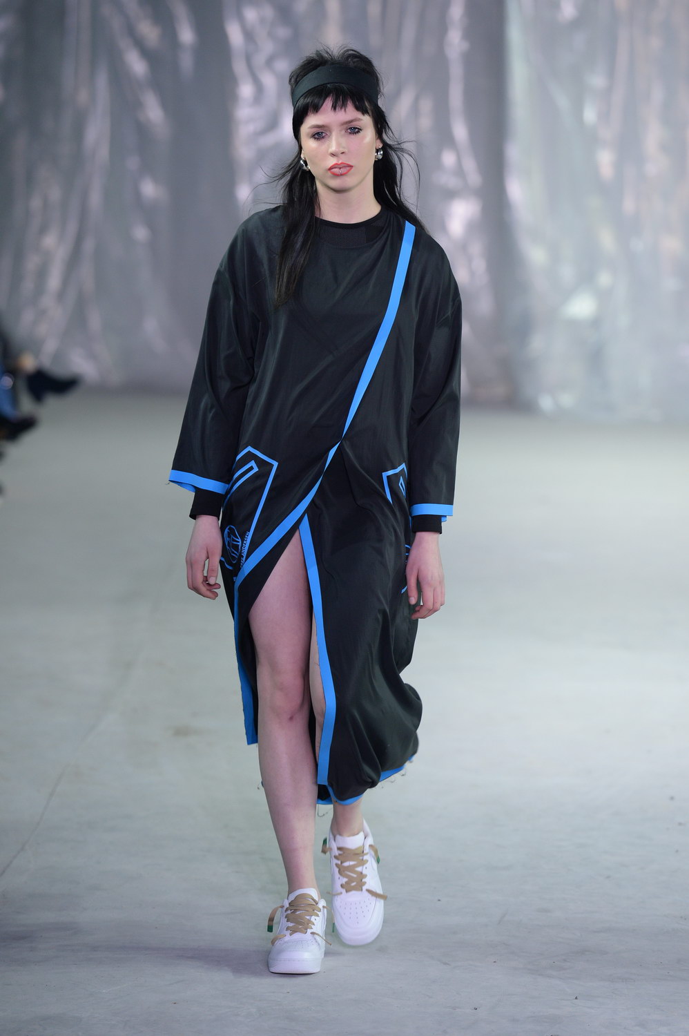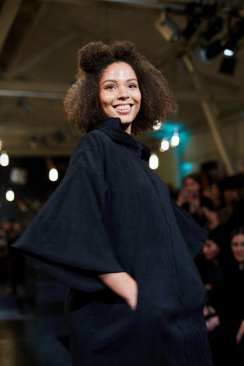 This was Lærke Andersen’s first runway show at Copenhagen Fashion Week and she’s well on her way to positioning herself as one of Denmark’s most interesting fashion voices. Her workwear-cum-streetwear plays with proportion and silhouette in a way that is fun but wearable. Her basketball jersey-meets-workshop smock dress in black with a bright blue stripe is casual cool, while her bright blue demi-bondage overcoat asks if you can ever have too many straps (answer: no!).