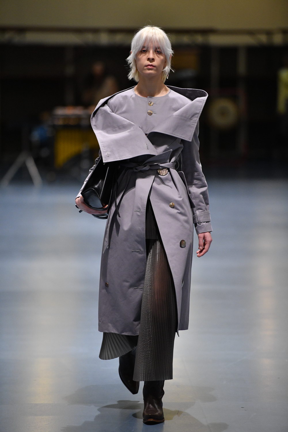 The queen of making off-centre silhouettes look chic, Freya Dalsjø’s show this year was both cool and collected. There’s always a twist, no matter how simple the clothes appear at first glance. Her pointy-shouldered trench and double-breasted vest made into a sash were among the best things we saw this whole season.
