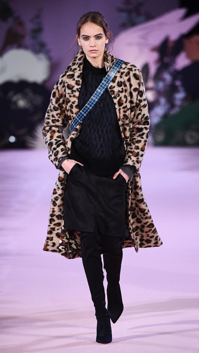 Munthe’s show this season was all about wearable separates and matching suits. Their pink sateen suit had the whole audience mentally updating their wardrobes. Lots of brands do a faux fur leopard coat, but few are this good; we also love that stripe of tartan across the chest for the perfect pattern clash.