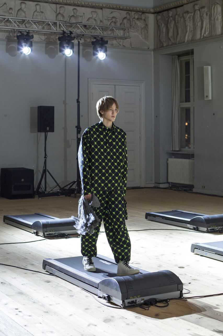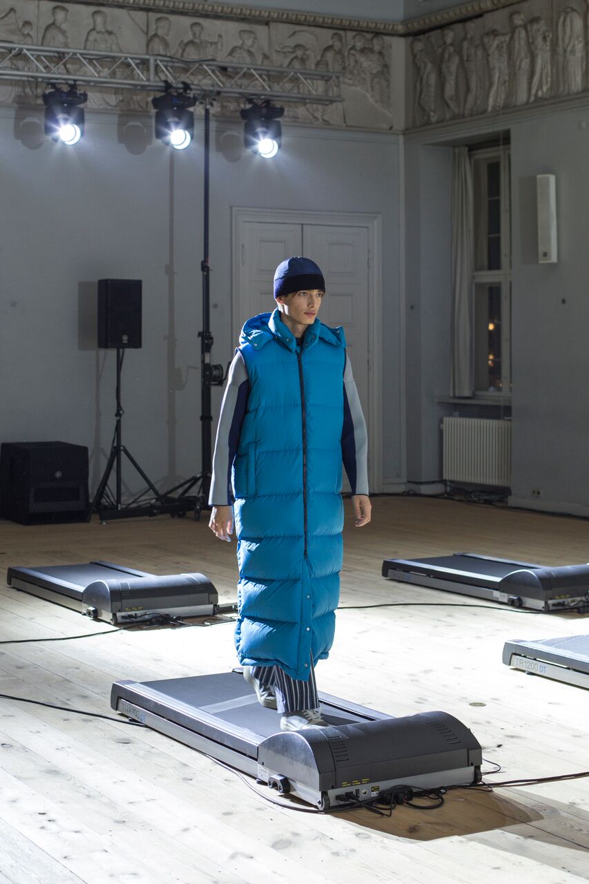 A runway is basically just a fashion treadmill, and Sunnei finally got right down to it and just put models on actual treadmills! The Italian brand’s debut at Copenhagen Fashion Week was fun, irreverent and definitely different. A bright blue full-body down vest? Okay! Lime green and black suit? Yeah! Definitely not minimalist, and definitely a refreshing moment this season.
