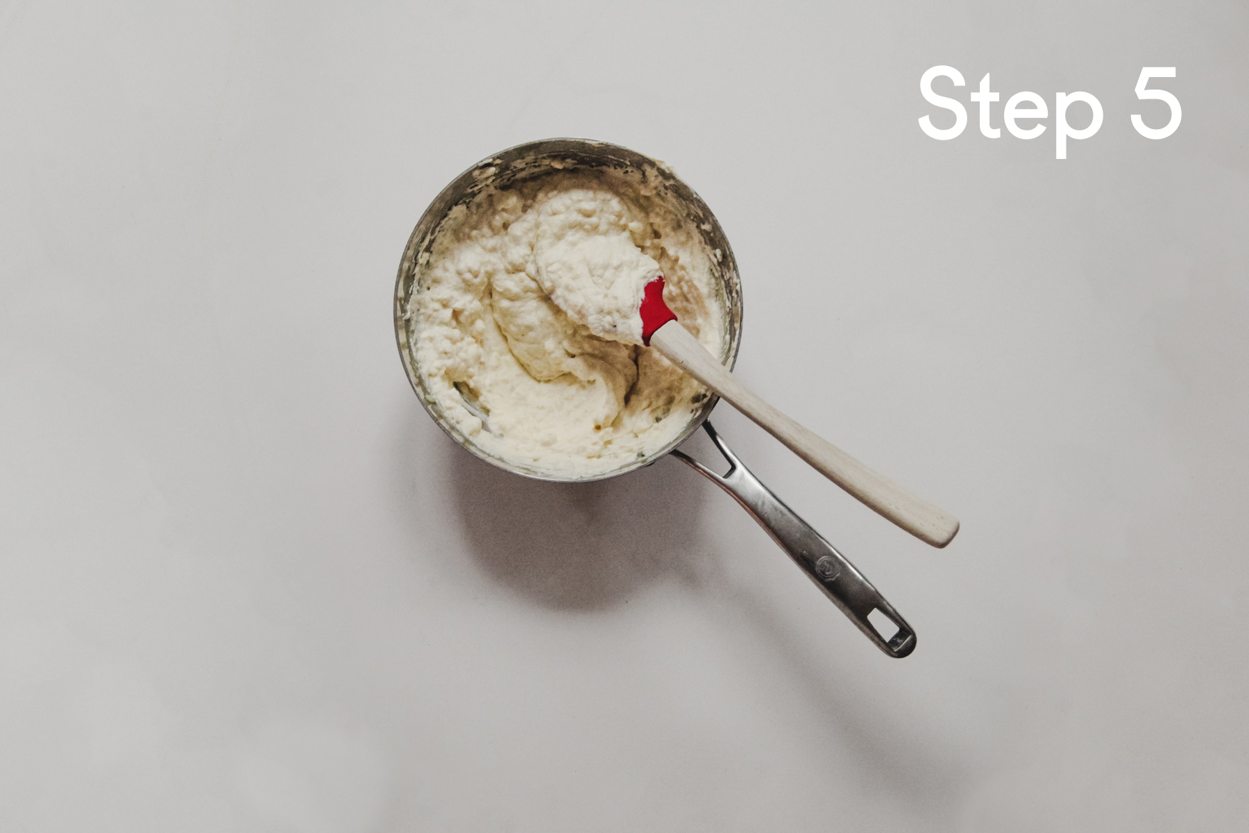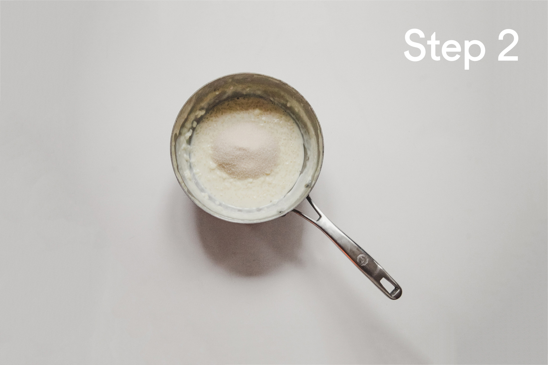 Split the vanilla bean and scrape out the seeds. Add the seeds to the saucepan.