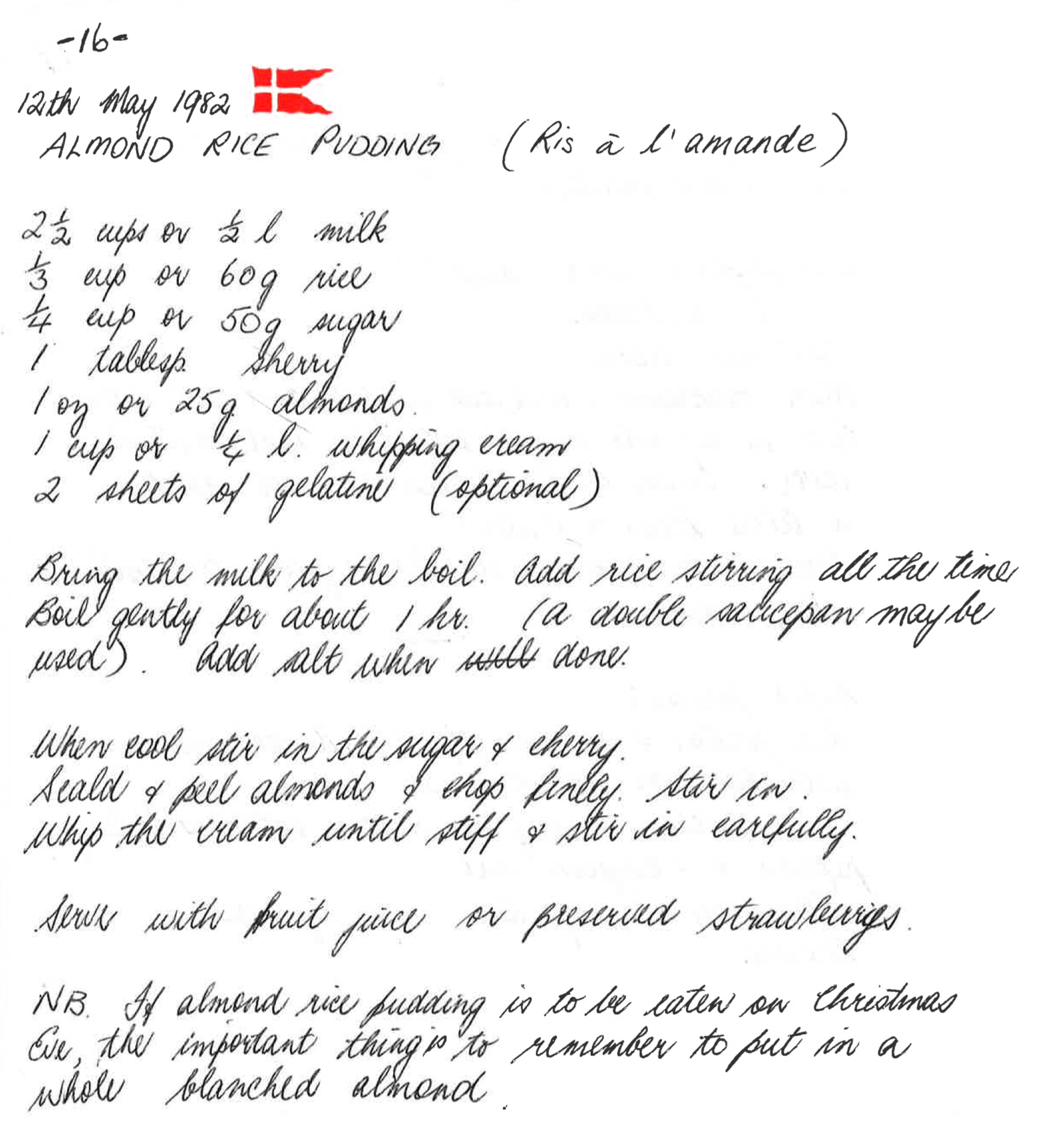 This is a modified recipe from my mum. She’s Australian and lived in Copenhagen in 1982 with my Danish dad. She spent part of her time learning the Danish language and going to Danish cooking school. She took copious notes, and we still have this original risalamande recipe that we’ve used in the family ever since. Thanks mum!