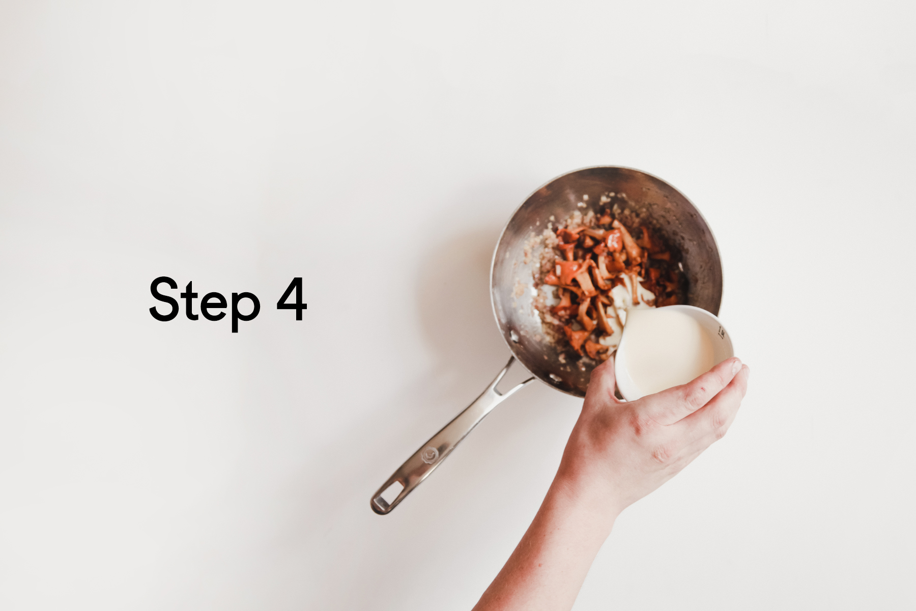 Add a small dash of cream to the bottom of the pan. This will help deglaze the pan, a technique used to loosen up all that good caramelized flavor that’s stuck to the bottom of the pan. It will also give the mushrooms a creamy, rich texture. Let the cream come up to a simmer, scrape everything off the bottom of the pan, then let it sit for a minute or two, reducing and infusing with the flavour of the mushrooms.
