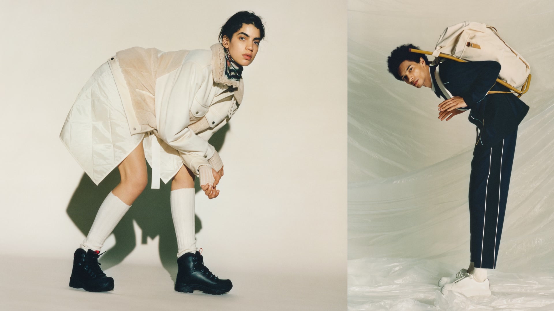 Unisex, a bit avant garde, and a bit functionalist: that’s Danish brand Heliot Emil. The brand started in 2016, run by brothers Victor and Julius Juul. The look is workwear combined with 90s silhouettes, rendered in a very Scandinavian monochrome. We’ll take it!