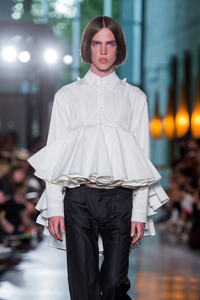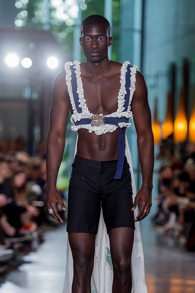 Sculptural, provocative and gender-fluid, Aleksander Sahr’s work is a deconstruction of draping and tailoring, resulting in an artistic and surprising line of menswear. Look out for frills, crop-tops, fringe and other typically “feminine” pieces.
