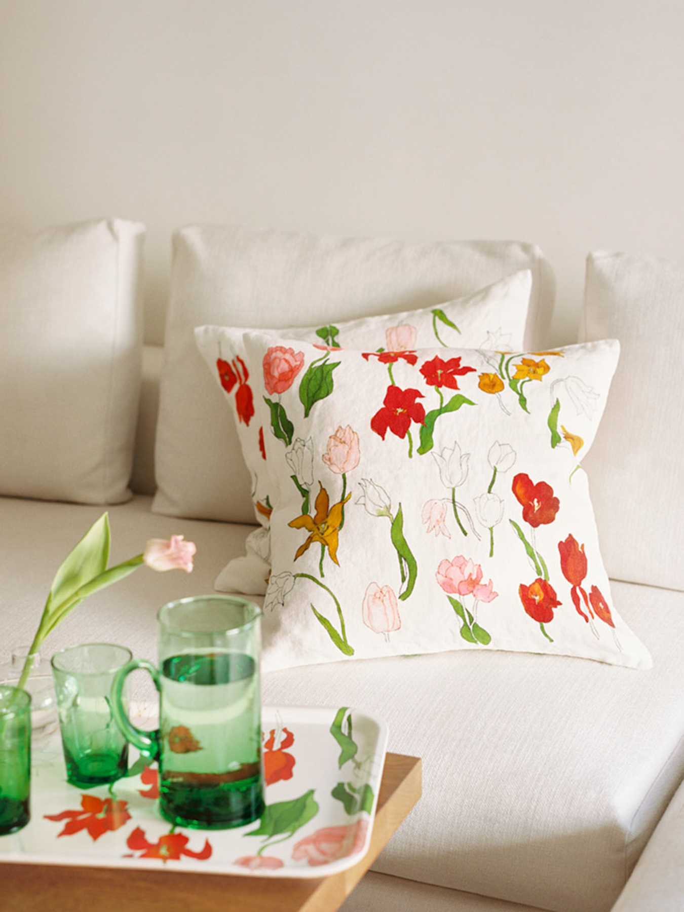 Djurgården, from which this collection takes its inspiration, is a tranquil island full of natural landscapes, meadows, and gardens which erupt into bloom every spring. The lightness and bursts of color within the Garden flora collection mimics the gardens of Djurgården in the springtime, as it envelops you in grassy greens and flashes of bright florals.