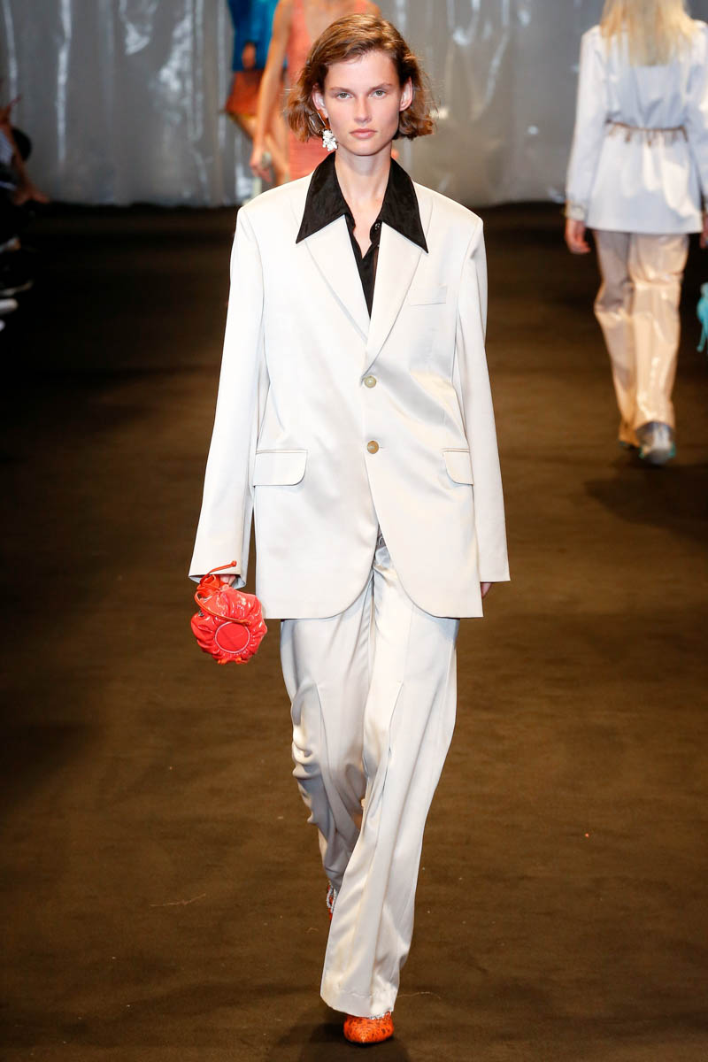 This season, it was all about American second-hand finds from the 1970s, plastic-fantastic and oversized for maximum effect. Johansson dubbed the concept “thrift store on acid,” with the surfers of his vacation spot of Biarritz used as muses for good measure. Head to the Studio 54, head to the beach; wherever you go, have fun.
