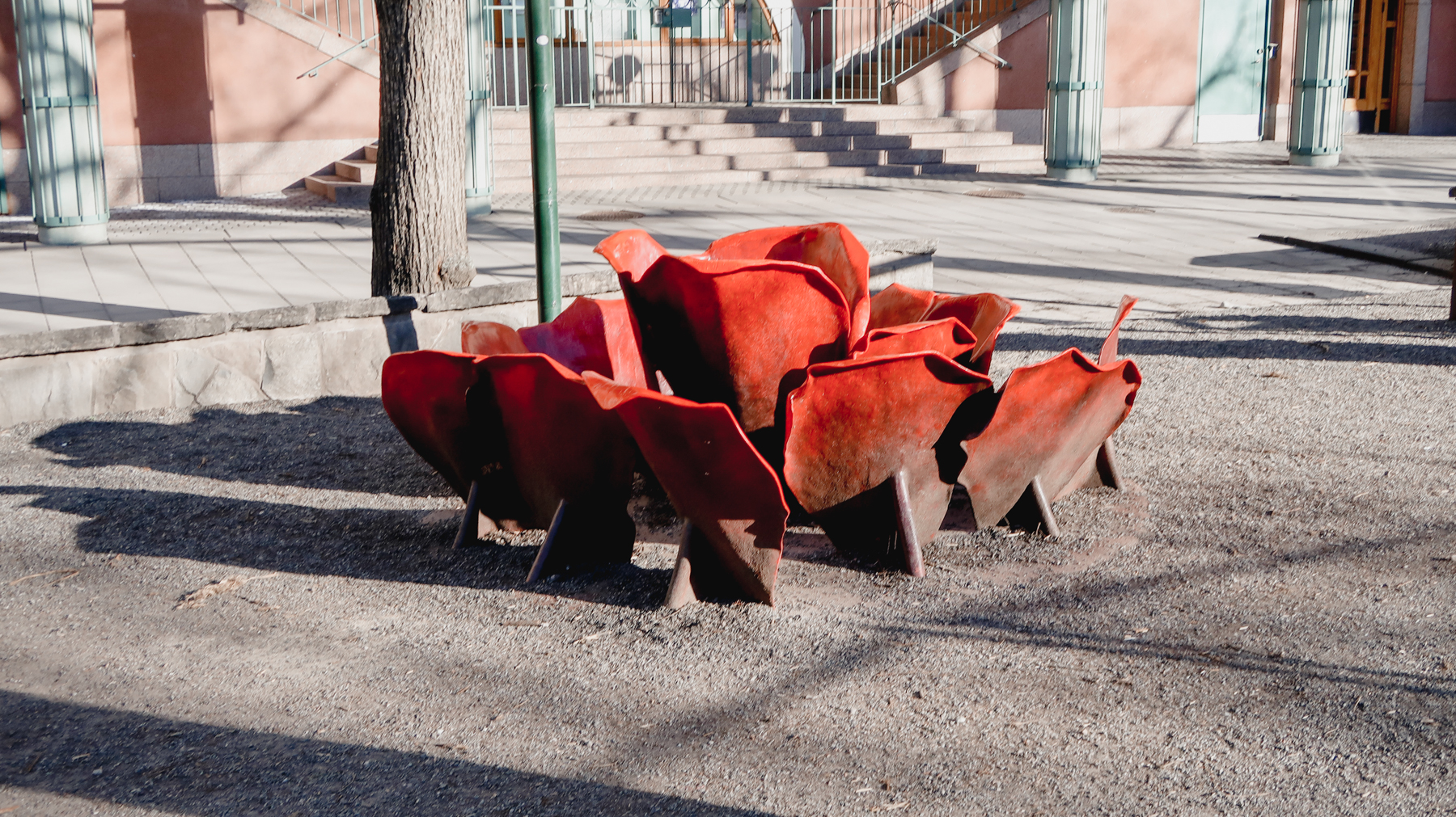 The playground is a lesson on surrealism. With giant furniture, a playhouse in the shape of a squash, doors to nowhere, and a stack of books with a portal inside, this is a unique place to discover.