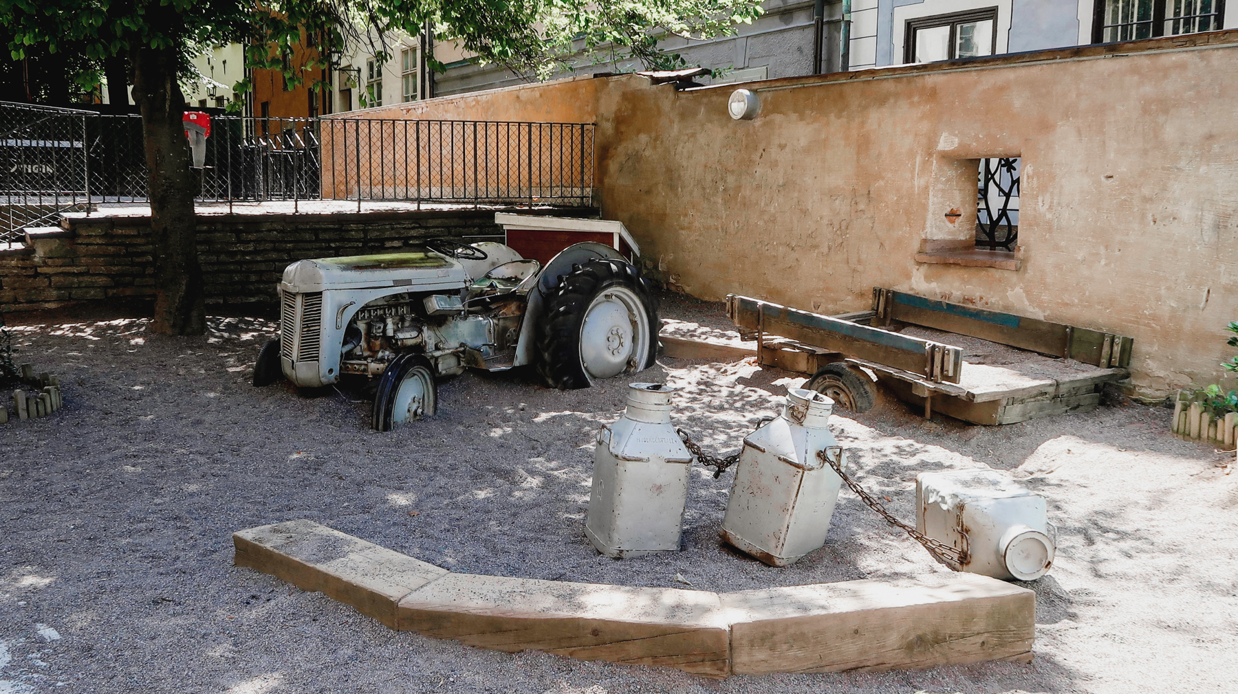 There is an old tractor and a big blue playhouse as well as typical favorites like swings and a sandbox. This playground is a well-shaded retreat after a busy day seeing sights in the touristy old town.