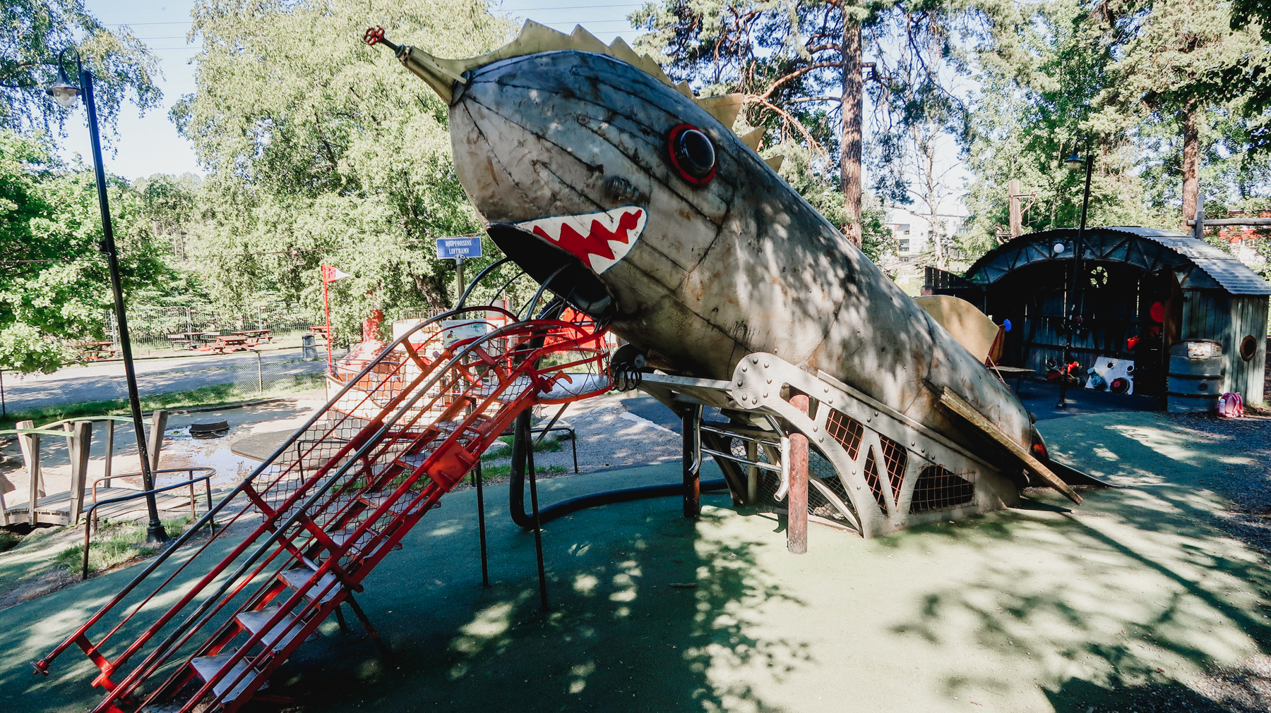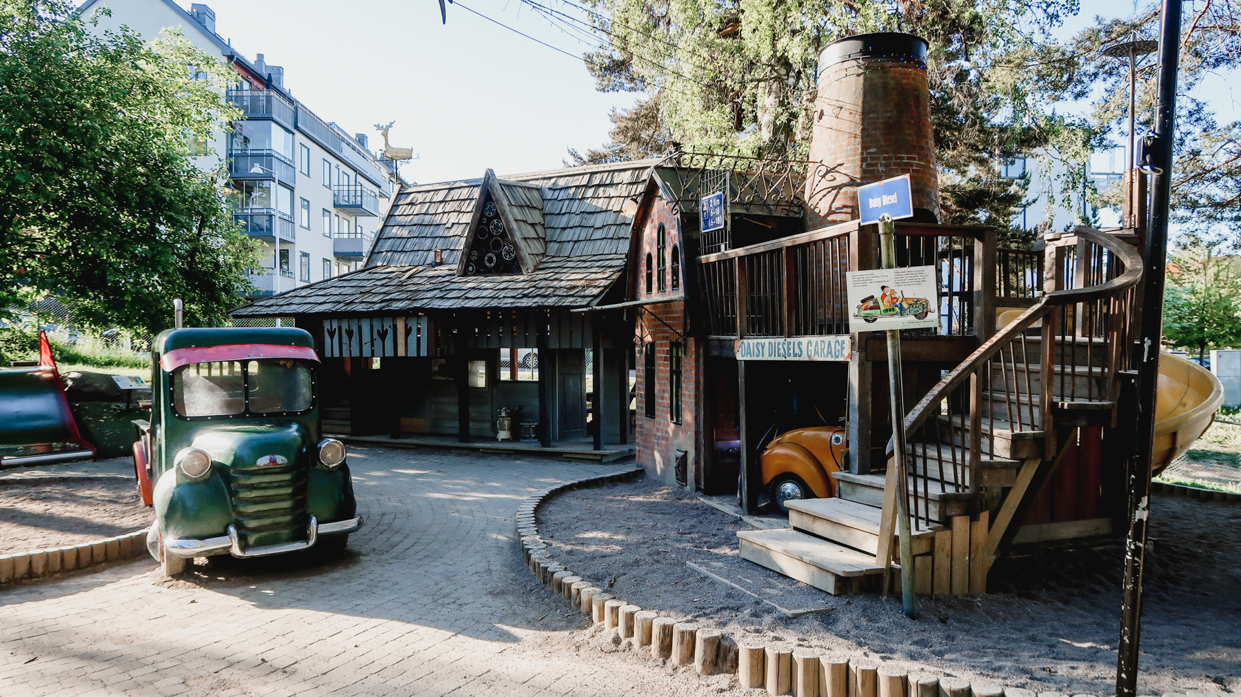 Mulle Mecks Lekpark is located in Solna, north of Stockholm, in the Järva neighborhood. It is an incredible Mulle Meck- themed playground, paying homage to the famous children’s book series.