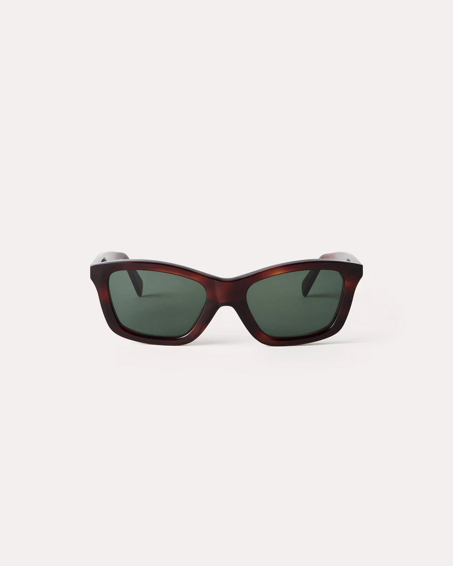 Swedish fashion house Rodebjer is known for their contemporary, bohemian style blended with timeless quality and silhouettes. Their sunglasses follow suit, with geometric silhouettes and colorful lenses. The sunglasses are made from either 100% acetate or metal.