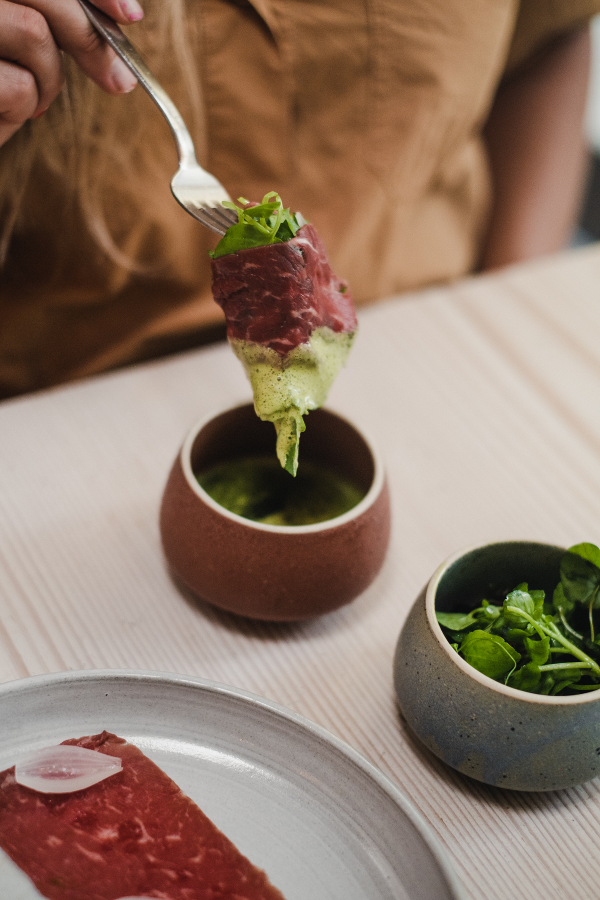 Bista opened a month ago, but both the food and the service feel more experienced than that. Both co-founder chefs have worked in several kitchens in Copenhagen, translating their knowledge into a creative menu that showcases classic and creative dishes.