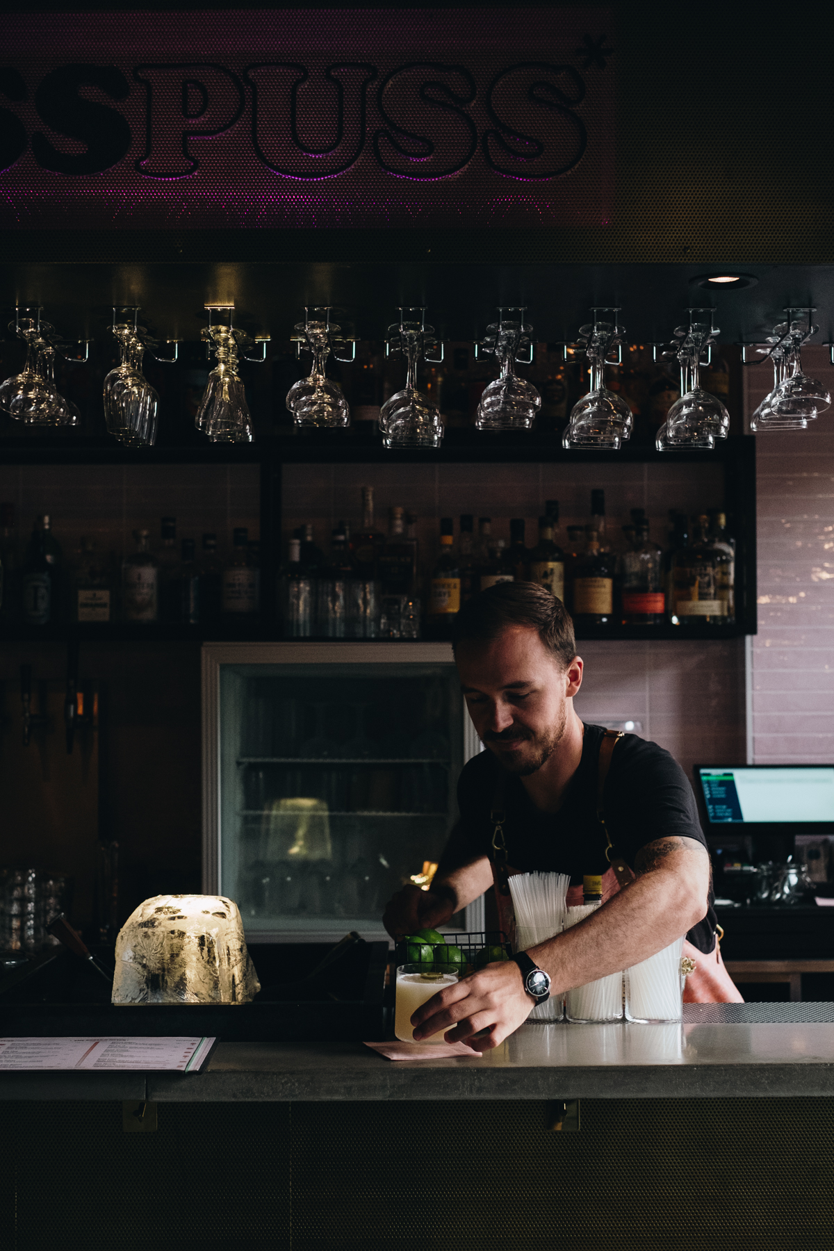 Puss Puss is located right by Højbro bridge, a hotspot for restaurants, bars, and tourists walking by. It is a high-quality cocktail bar focusing on creating a fun, unique experience. Ted has won the Danish Championships of cocktails two years in a row, so he’s not messing around.