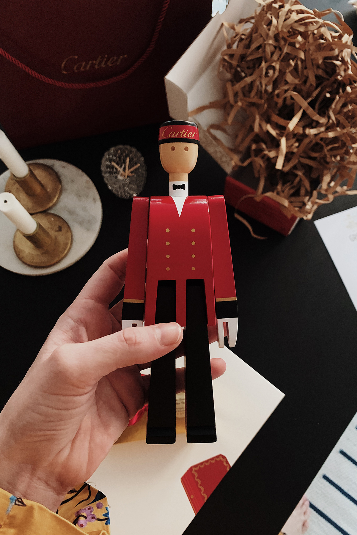 Cartier celebrates the first anniversary of its store opening Copenhagen with a unique collaboration with Danish design brand Kay Bojesen. The center of this creative endeavor is the iconic Cartier page who, dressed in a gold button-trimmed uniform, a small hat, and white gloves, has been opening the doors to the Cartier universe for decades. Being famous for its wooden toys, Kay Bojesen interprets him using sustainable FSC-certified beech wood. Swing by the Cartier Copenhagen boutique until 10th December and see for yourself!