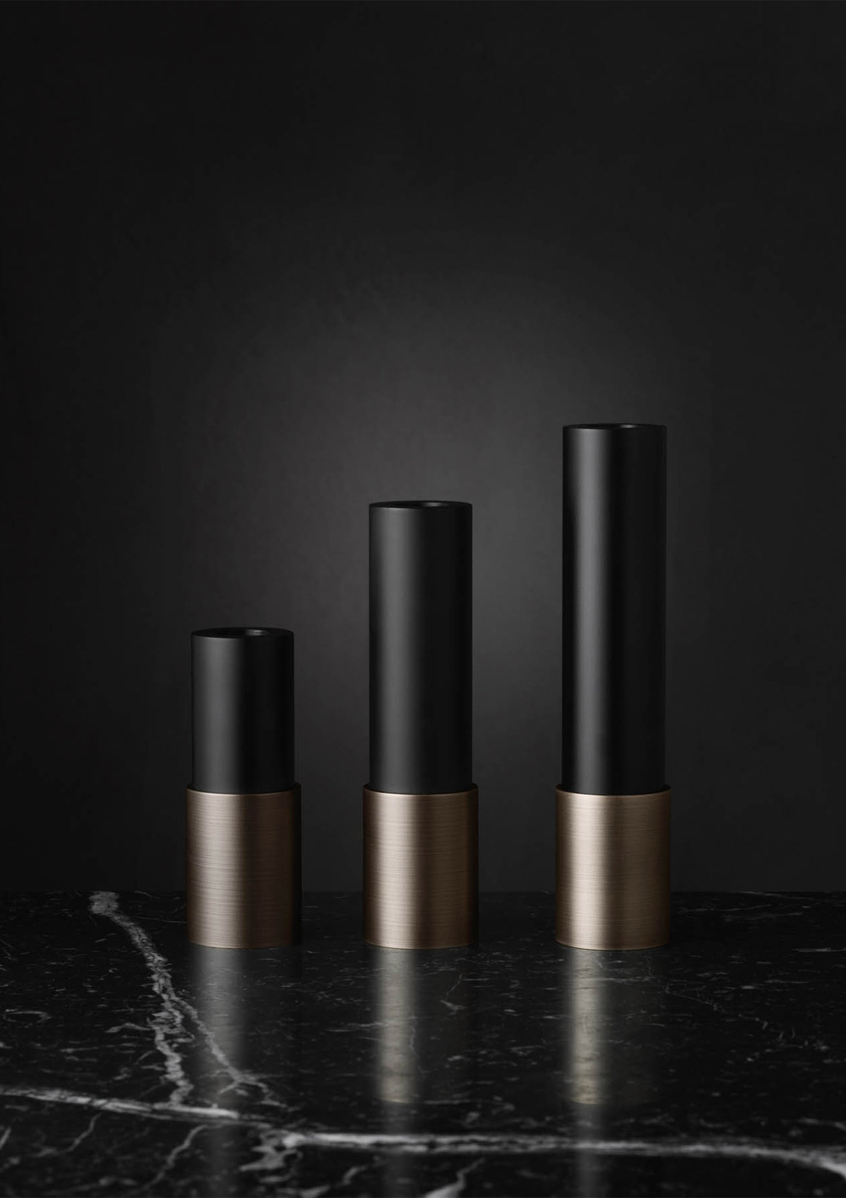 GUBI is introducing the new Candlestick Collection of three modern candleholders by Danish design studio Space Copenhagen. The Candlestick combines industrial steel with dark antique brass and sets the stage for colorful as well as classic white candles.