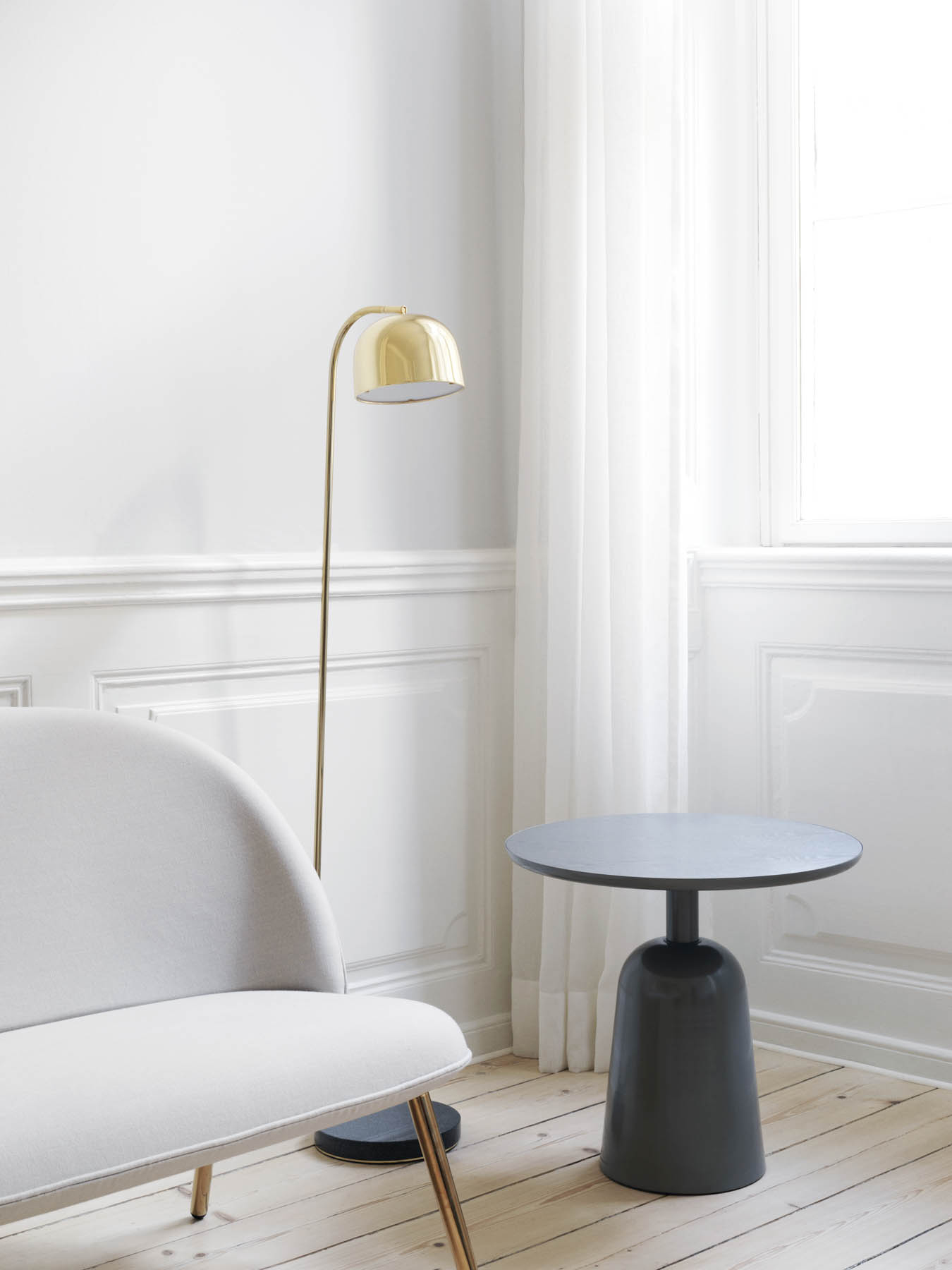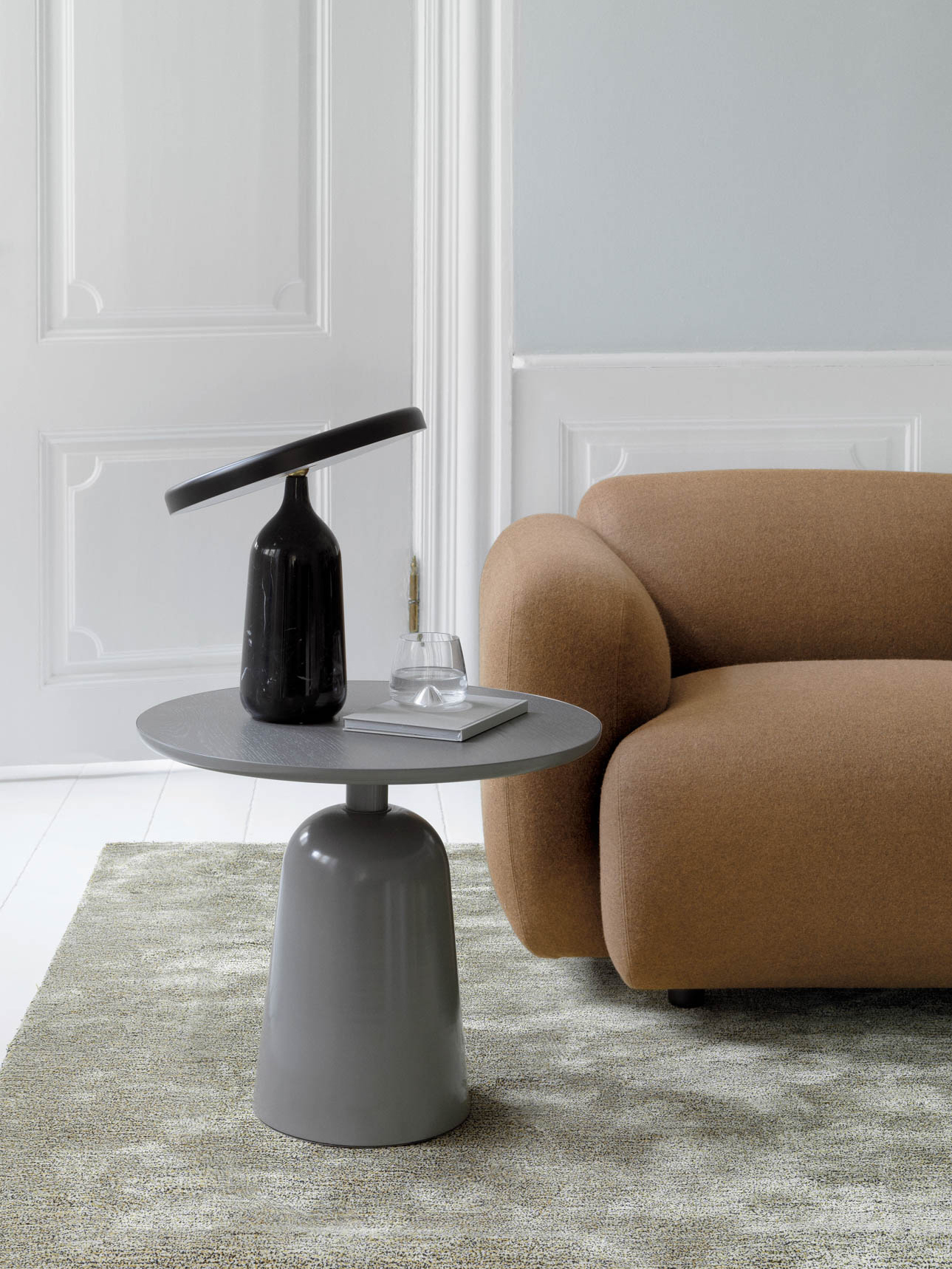 In need of a small functional table to place your coffee cup and book while lounging? Normann Copenhagen’s Turn Table has you covered. The height of the round tabletop is adjustable making it easy to pair up with different pieces of furniture all over the apartment. The ash veneer tabletop is lacquered in the same color as the steel base – choose between black, dark gray, and a lighter, warm gray.