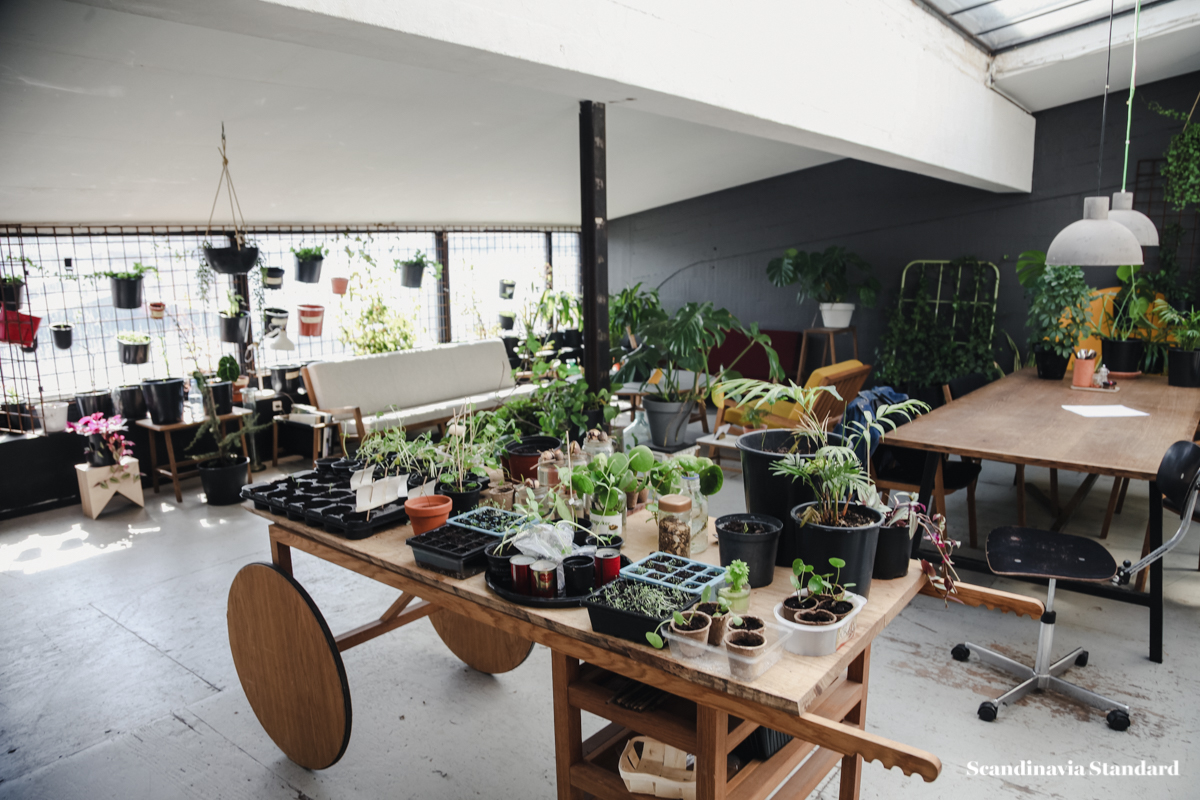 Luckily, you can view them together at their Amager studio. In addition to a love of great design, the men both love plants. Their studio is practically a greenhouse, with seedlings and hanging plants as far as the eye can see.