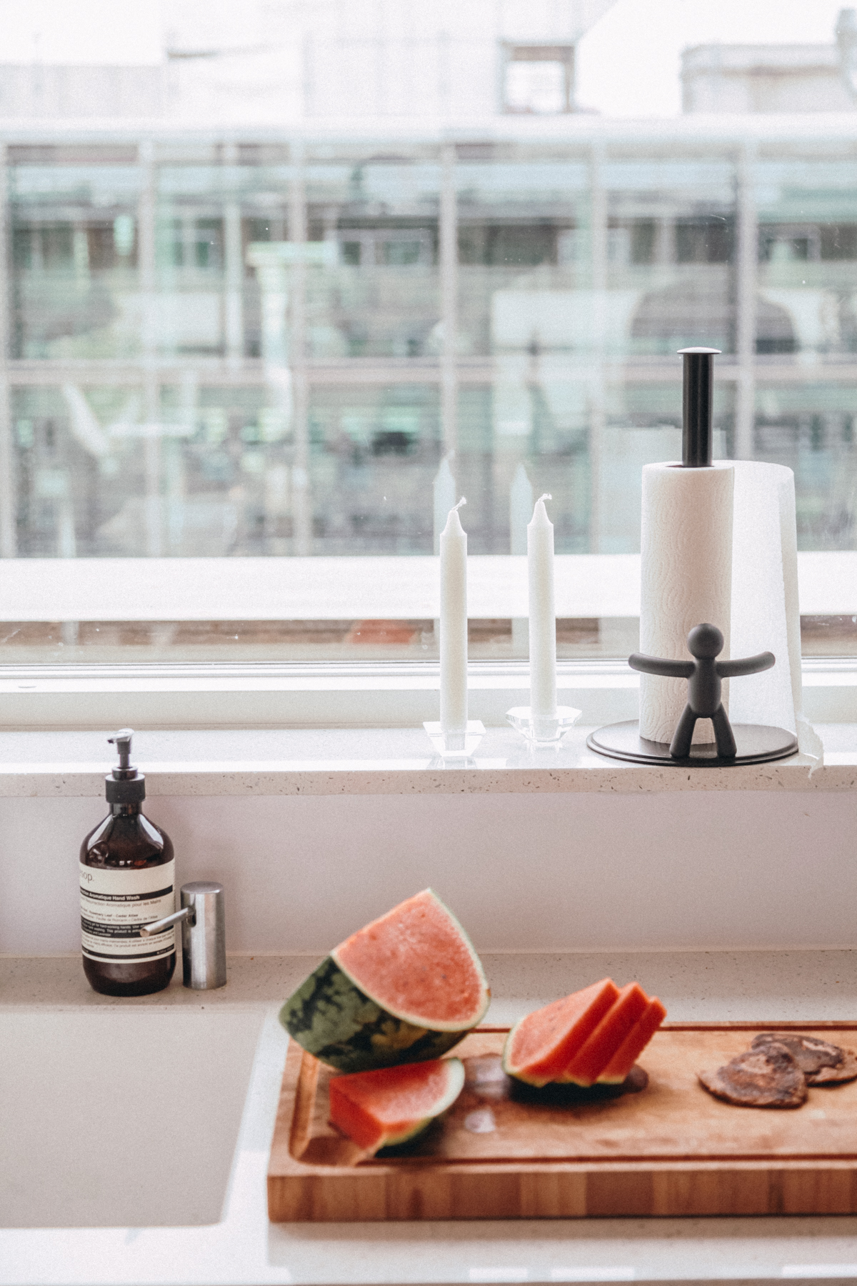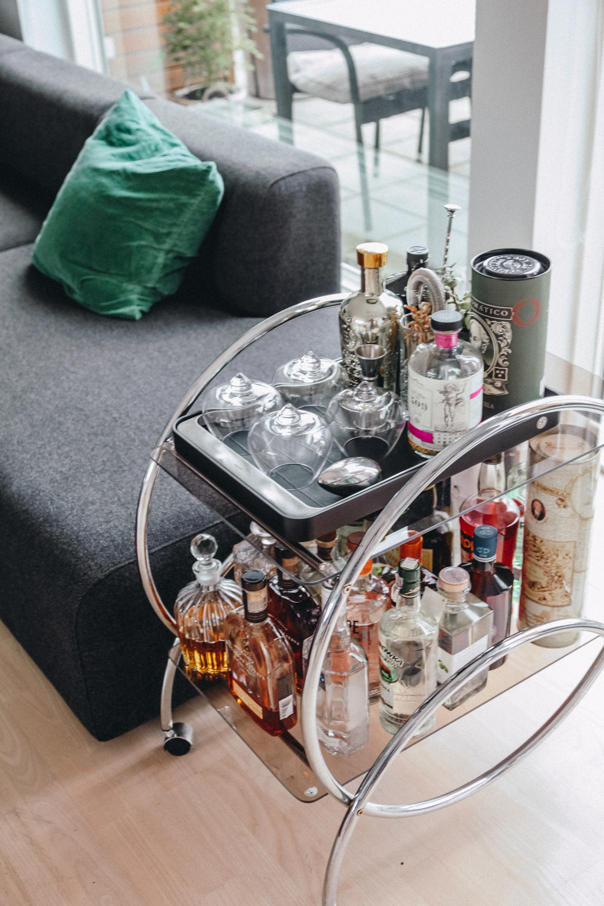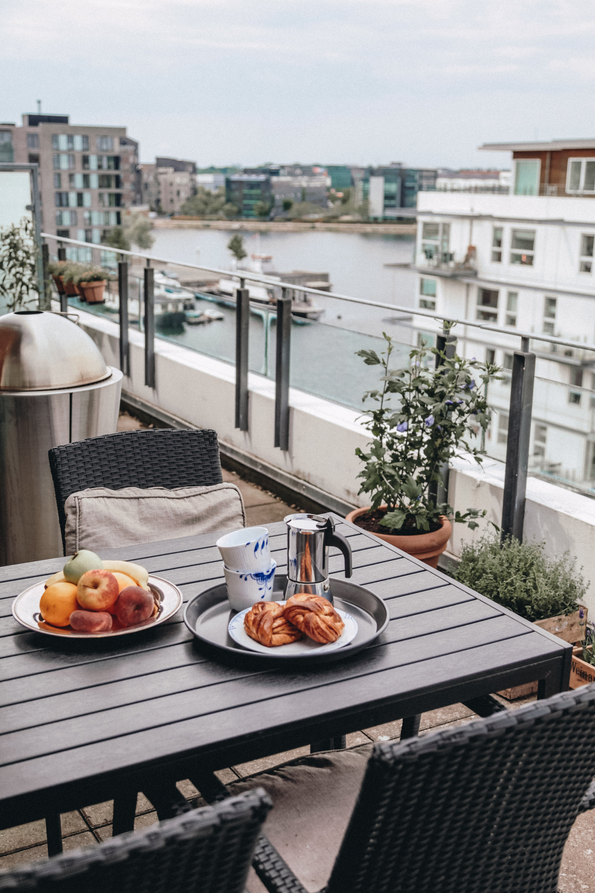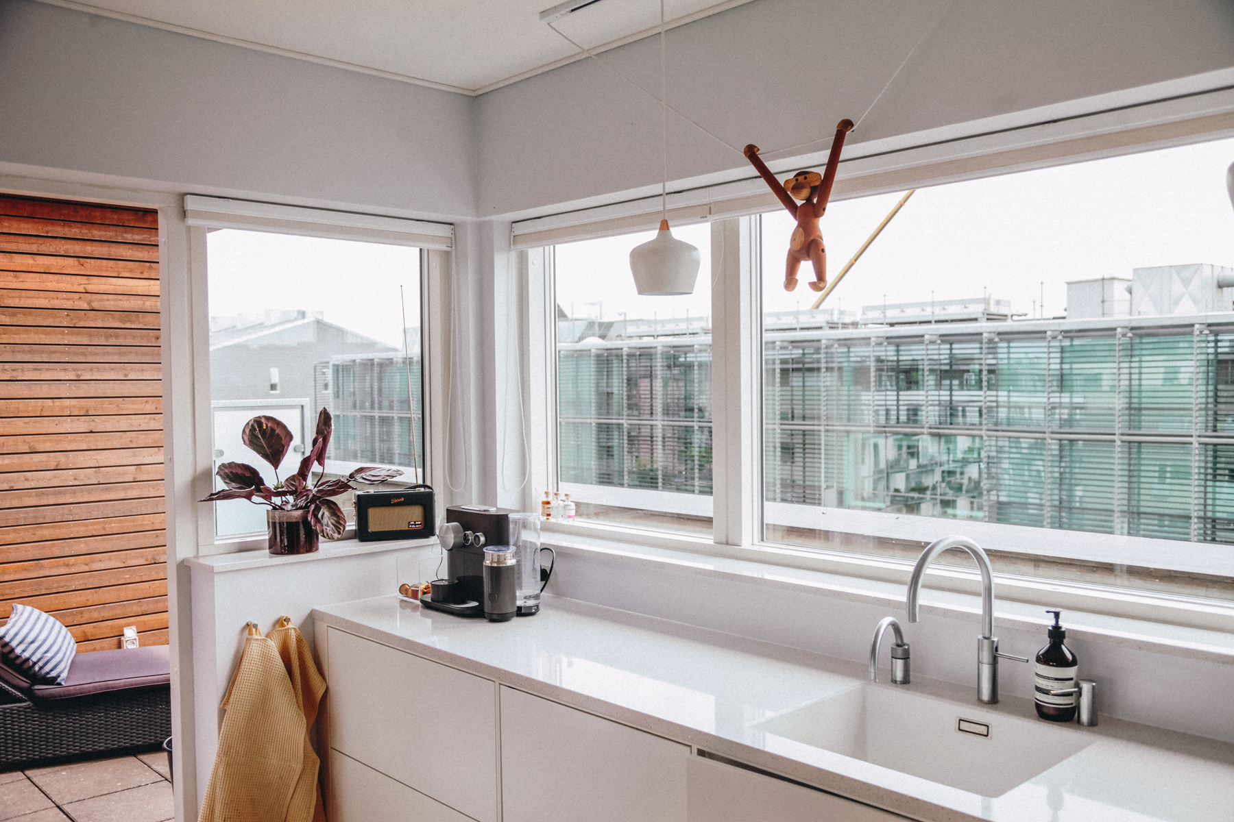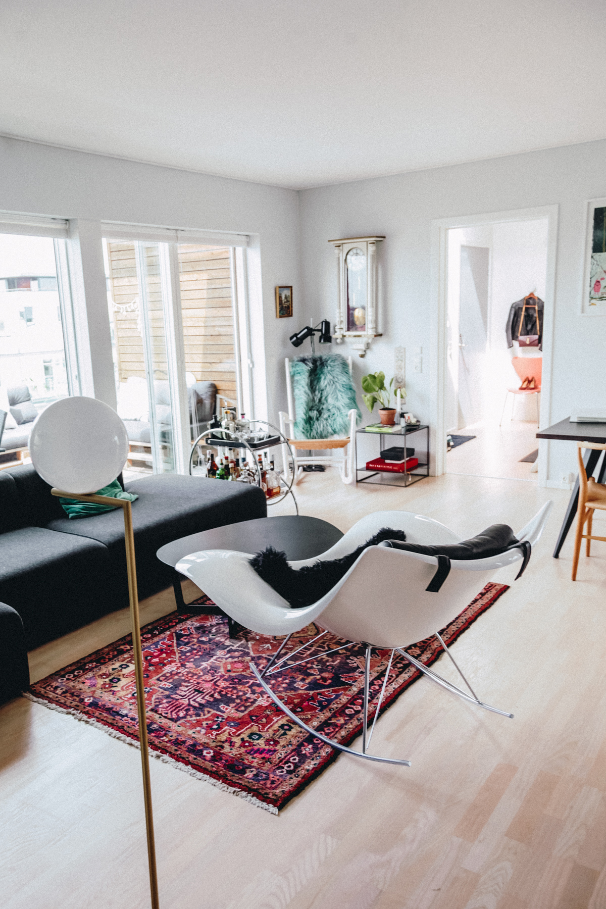 “My favorite room is probably the kitchen,” Charlotte tells me, “Because we like to cook and entertain. It’s so nice to be able to cook, talk to Lars and my friends, and still feel like I’m in the heart of the apartment. The kitchen isn’t closed off. Of course, in summer, the large balcony off of the living room is amazing. There are plants out there and a great view; it’s perfect for a glass of wine or a meal, or just relaxing.”