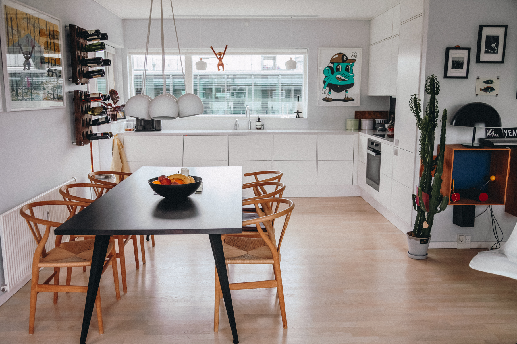 As for Lars’s favorite thing in the apartment, it’s a toss-up between the Stingray Chair – a beautiful piece of Danish design produced by Fredericia Furniture – and his beloved cactus Marius.